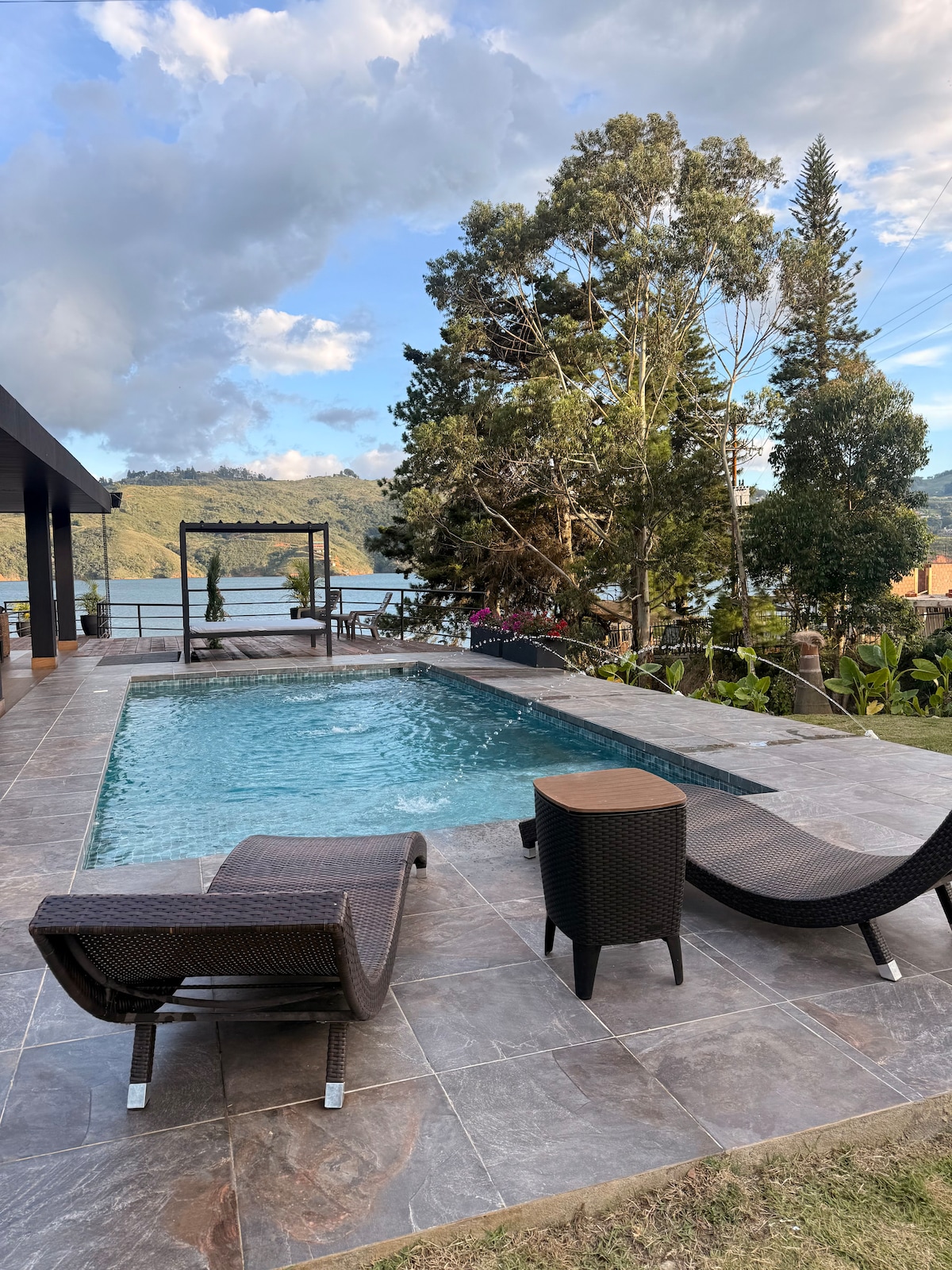 Disfruta una experiencia única en nuestra finca privada en Lago Calima, ideal para descansar y desconectarte. Cuenta con piscina privada, BBQ, trampolín para niños y cancha de mini fútbol. Además, tiene acceso privado al lago para vivir la naturaleza al máximo. Perfecta para parejas, familias o grupos. Disfruta atardeceres increíbles, aire puro y total tranquilidad en un espacio exclusivo solo para ti.