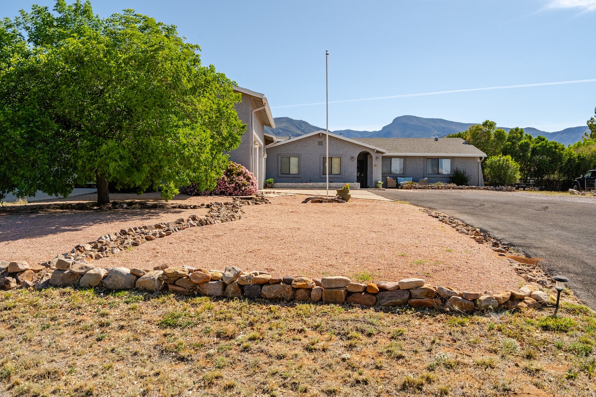 ¡Ubicación espectacular! La casa de campo se encuentra tranquilamente en los mezquites con una lujosa cama tamaño king, bañera de hidromasaje y zonas de estar meditativas en la parte delantera y trasera. ¡A poca distancia a pie/en bicicleta de GRANDES rutas de senderismo, golf, tenis, parques, piscinas, tiendas y restaurantes!