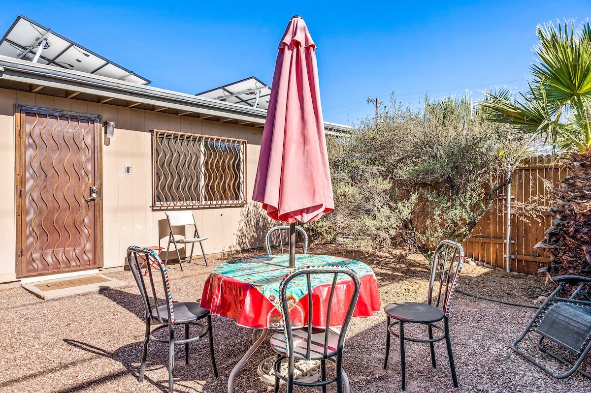 Tucson Poet's Studio apareció en Architectural Digest (10-1-2025) “50 Best Airbnbs Across the United States", New York Magazine (6-19-2015) “Taste the Flavors of Tucson” y LivAbility (7-6-2018) “Accessible Airbnb” *NUEVO* ¡Cargador para vehículos eléctricos! El estudio comparte el patio privado amurallado y la piscina con la casa principal donde vivimos mi esposo y yo. Situado en el vecindario de Peter Howell, una conveniente zona del centro de la ciudad cerca de todo (a 2,5 millas de UA, a 5 millas del centro de la ciudad).