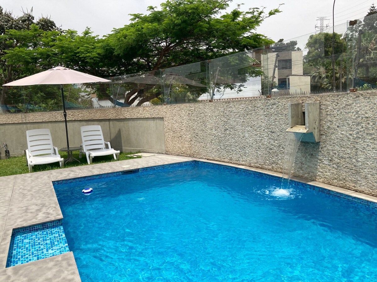 Experimenta la combinación perfecta de diseño y comodidad en nuestro espacioso hogar. Baños recientemente renovados, varias áreas de estar al aire libre y jardines exuberantes, ideales para observar aves. Ubicado en una zona soleada y tranquila de Lima con acceso exclusivo a todos los servicios, una cocina bien equipada, piscina y wifi confiable. Camina hasta mercados, cafeterías, restaurantes, farmacias y mucho más. Ya sea que busques relajación o entretenimiento, nuestro alojamiento ofrece el refugio ideal para tu estadía en Lima.