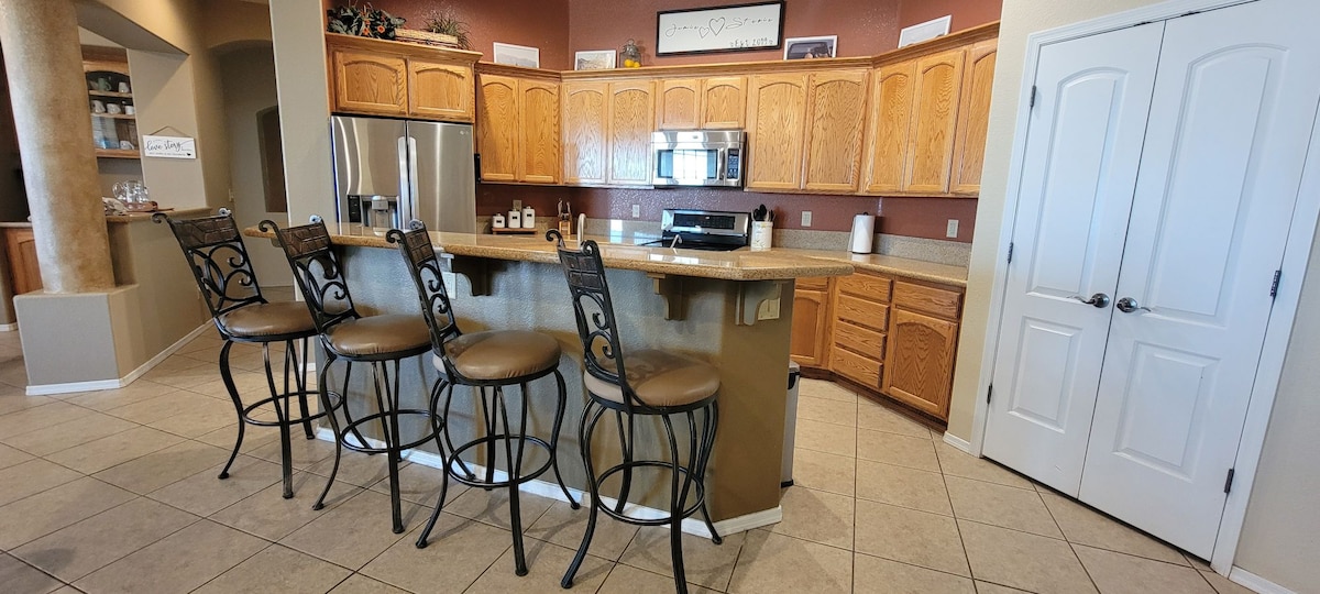 📍Quartzsite, Arizona ¡La capital mundial de la roca y la joya se triplicará y encontrar moteles puede ser extremadamente desafiante y caro! Reserva en pareja, en grupo de amigos o en familia. Es una casa de 3 dormitorios y 2 baños con 2 camas tamaño queen y una cama de día con una cama doble. Tienes aire acondicionado/calefacción central. Hay una lavandería con lavadora y secadora. Tendrás acceso a wifi y televisores. También tendrás una cocina con lavavajillas, estufa, microondas, así como ollas/sartenes y utensilios de cocina.