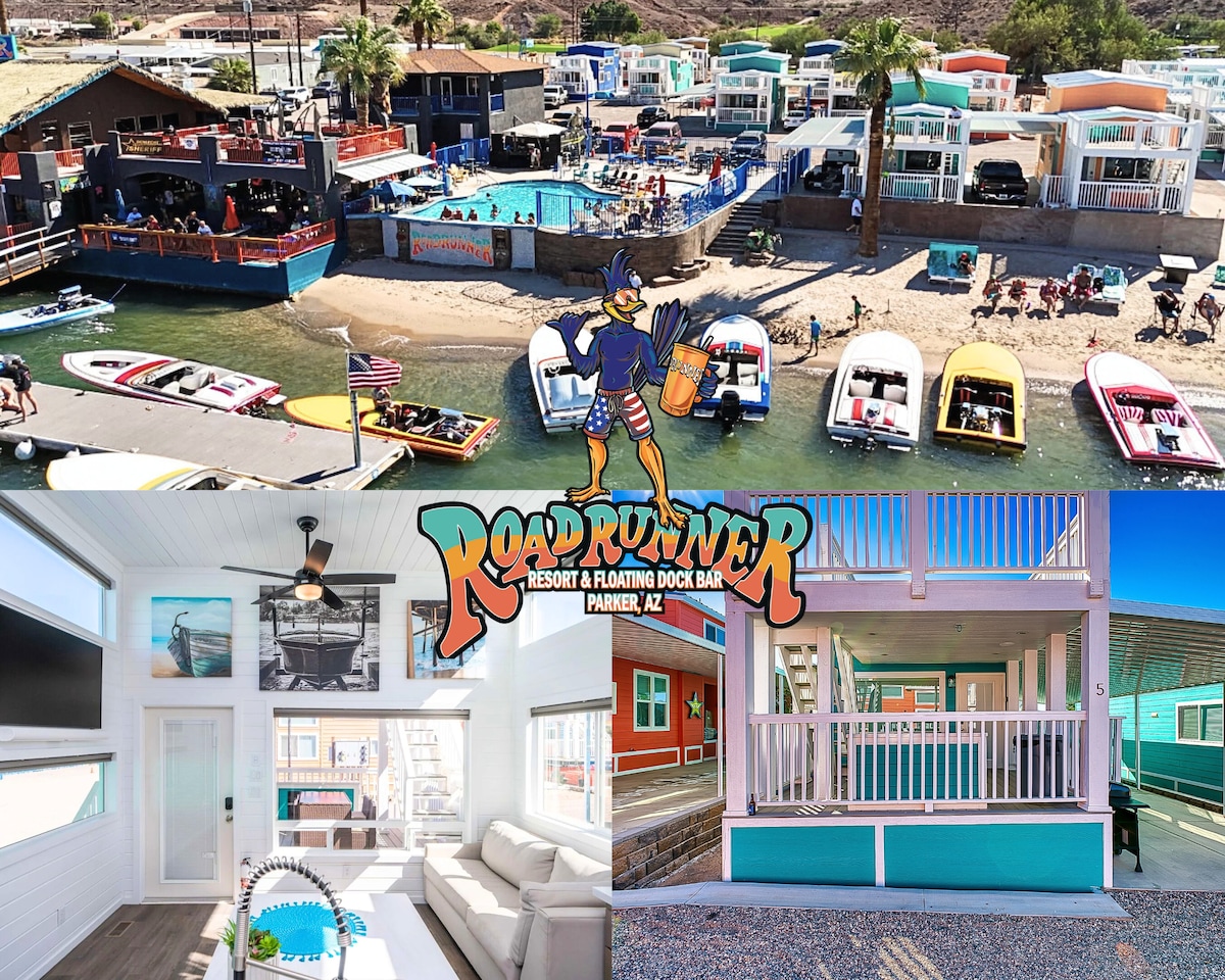 Paraíso frente al río en Parker Strip. Dock Holiday at Arizona Shores es una propiedad atemporal frente al río ubicada en la zona más deseable de Parker Strip con aguas profundas y anchas. Este antiguo motel divertido frente al río se ha convertido en nuestra casa familiar frente al río y nos gustaría compartirla contigo. Los muelles privados, la zona frente al río y las divertidas y cómodas 3 suites de bungalow a lo largo con increíbles áreas de estar frente al río al aire libre harán que tu próximo viaje al río sea inolvidable en el paraíso.