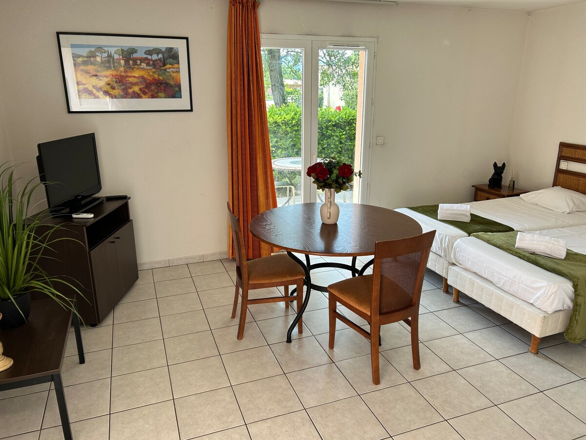 Relájese en este alojamiento con aire acondicionado, a pie, tranquilo y elegante. Entrada independiente autónoma. Este estudio, con instalaciones modernas, será su burbuja de descanso. Gran ducha de azulejos, cocina americana + vitrocerámica, nevera, armario y armario le hará la estancia agradable. Las persianas automáticas, las mosquiteras integradas y el ventilador central aumentarán su bienestar. Coche, motocicletas, bicicletas en el patio seguro, enchufe eléctrico para recargar bicicletas.