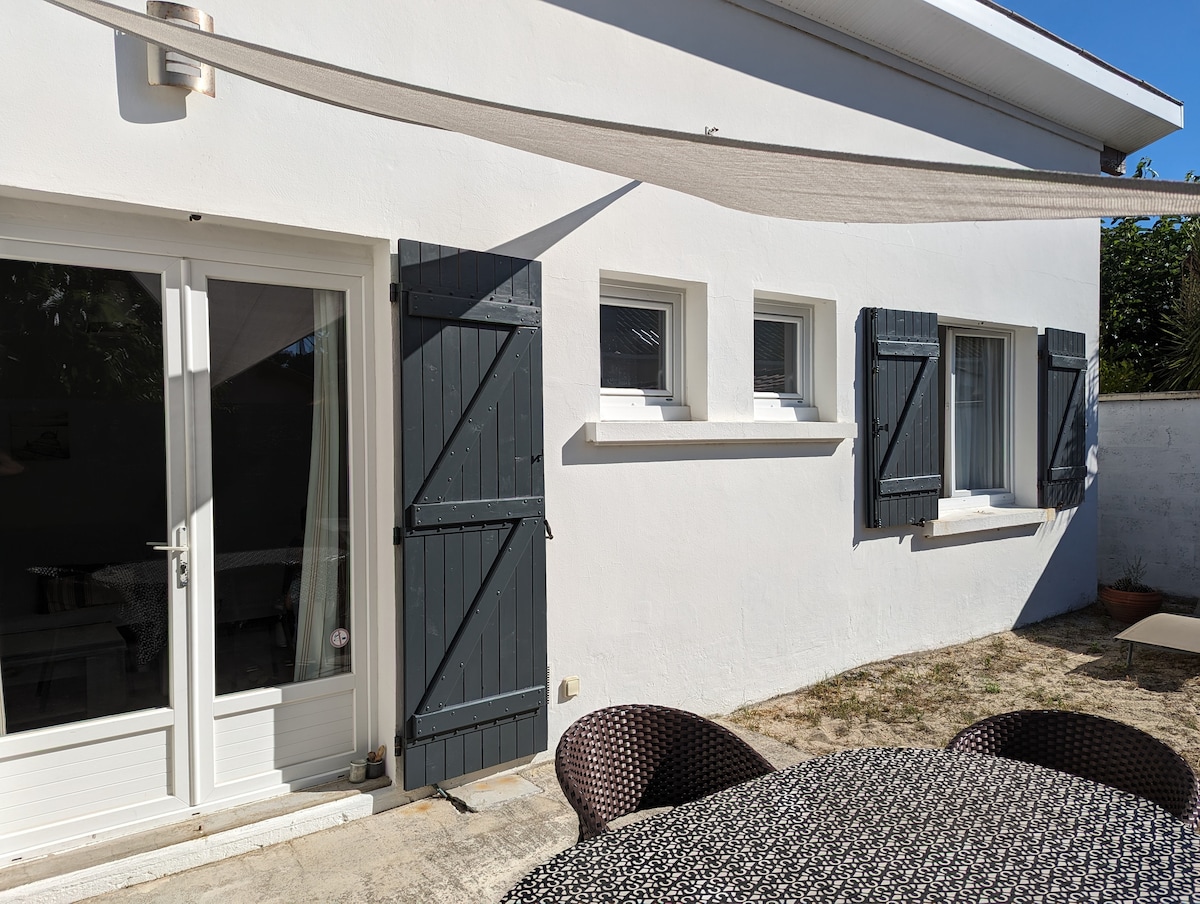 Casa de huéspedes independiente de 30 m2, muy luminosa, ambiente tranquilo con terraza en un jardín de 100 m2, equipada para 4 personas o pareja con niños pequeños, cocina equipada, sala de estar con sofá cama para 2 personas, un dormitorio separado con cama de 140, baño agradable. Cerca del bosque, el centro de La Teste, a menos de diez minutos del centro de Arcachon, sus playas, únase a la duna de Pilat en 1/4 de hora para la puesta del sol o disfrute de las playas del océano y sus olas. Mínimo 2 noches