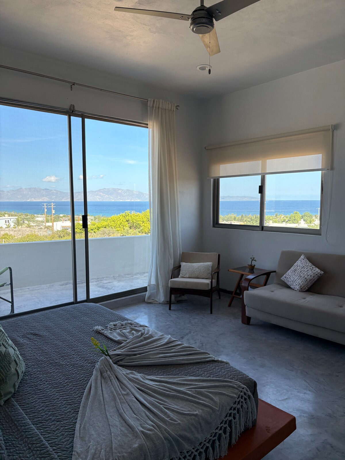 This Eco-friendly retreat offers front-row sunrise views over the Sea of Cortez—a gateway to epic experiences on land and sea. Swim alongside Mobula rays, share the sea with Orcas in their wild sanctuary, or unwind on pristine shores. Modern comfort meets Baja’s raw beauty in this cozy 2-bedroom, 1-bath second-floor apartment. Just 7–10 minutes from beaches, sea safaris, cafés, hot springs, mountain biking, and yoga. Stay connected with fast Starlink WiFi—where adventure meets stillness.