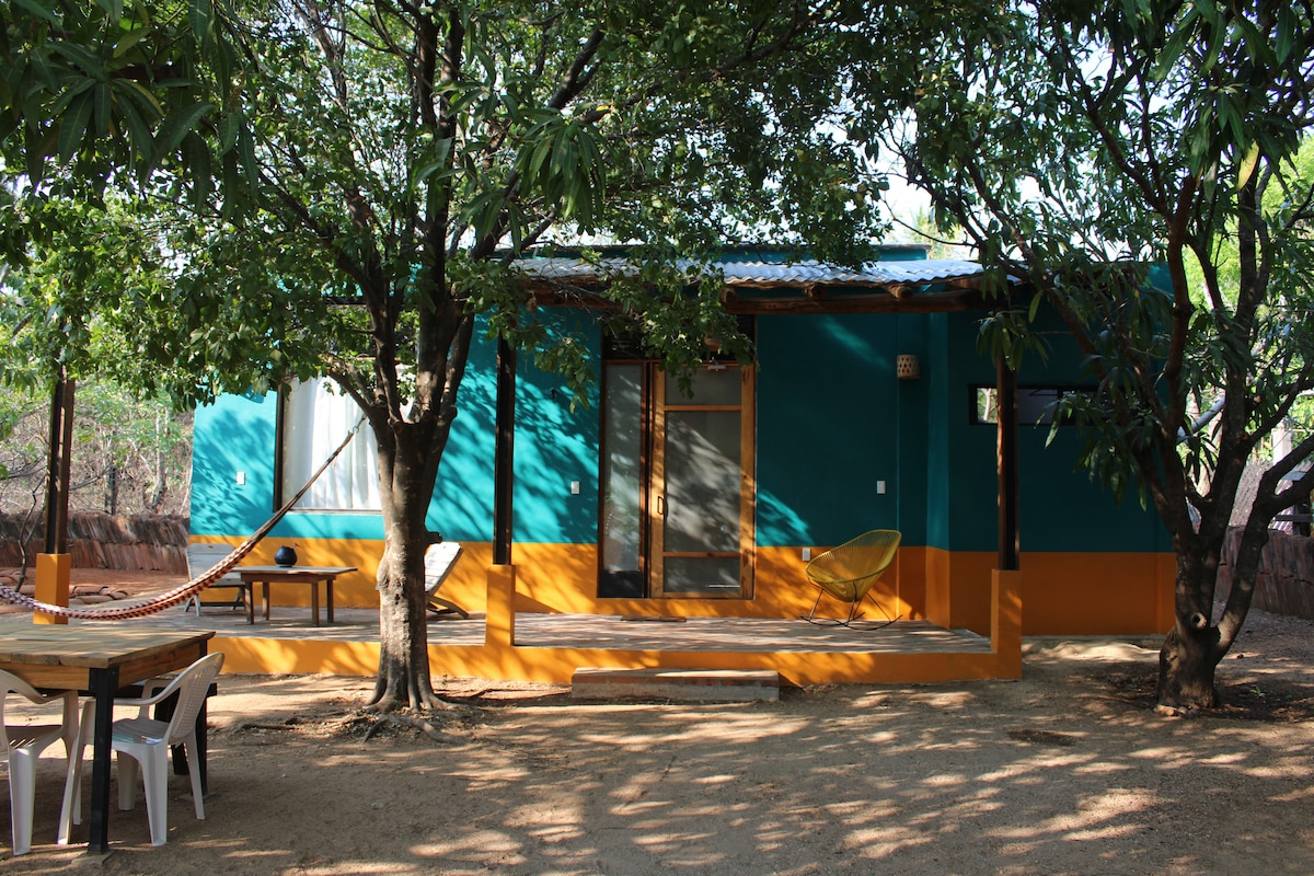 Disfruta de nuestra acogedora casa, su gran patio y su excelente ubicación en el centro de Juchitan. En un ambiente tranquilo y familiar. Ideal para parejas y personas que disfrutan la naturaleza y la arquitectura mexicana. Cuenta con baño privado en la habitación, sala con televisor y escritorio, una pequeña cocina con refrigerador y estufa y un hermoso corredor tradicional con vistas al patio. Pueden estacionar su vehículo dentro de la propiedad. Comparte patio con nuestra casa familiar.