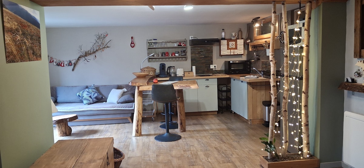 Un pequeño estudio atípico y acogedor ubicado en los techos de la ciudad medieval de Munster. Escapada perfecta para los visitantes que desean descubrir Alsacia en un estudio de hermosa factura, que combina la calidez de un ático de madera con la elegancia de un diseño loft moderno. El estudio está totalmente equipado para estancias cortas o más largas, con una cocina abierta, una sala de estar/comedor, un baño moderno y una zona de dormitorio y una biblioteca.