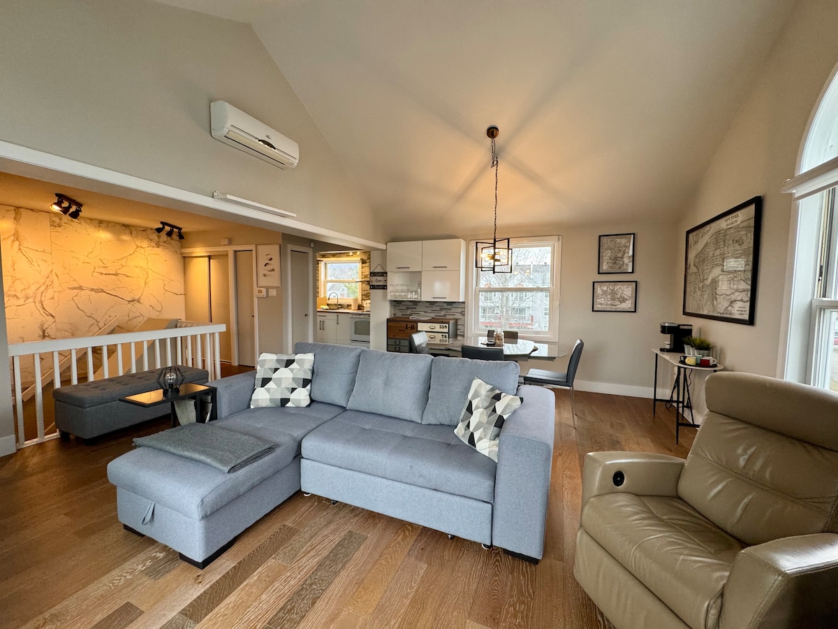 Bienvenido a nuestro condominio moderno y cómodo, idealmente situado en el corazón de Magog, directamente a orillas del hermoso lago Memphrémagog. Disfrute de un entorno tranquilo e impresionantes vistas al agua, a la vez que está a pocos pasos de los mejores restaurantes y tiendas del centro de la ciudad. Ya sea que esté buscando relajación o aventura, este lugar es la escapada perfecta. 👉 1 dormitorio cerrado con cama queen + sofá cama en la sala de estar (formato compacto, especialmente para reparaciones o niños).