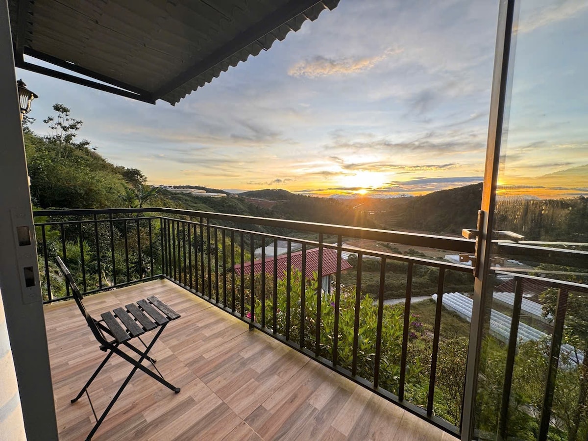 Disfrutarás de la naturaleza desde tu habitación ubicada en una colina de café de 2,5 hectáreas donde puedes cazar nubes, escalar montañas y bañarte en el arroyo con tus mascotas.