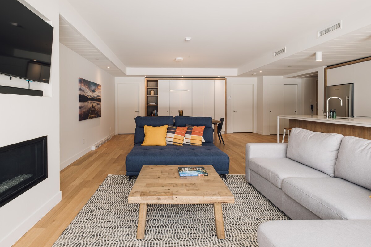 Este encantador condominio de dos pisos ofrece vistas durante todo el año tanto de Lac Tremblant como de la montaña Mont-Tremblant. El piso principal cuenta con un dormitorio con dos camas individuales, mientras que el dormitorio principal de la entreplanta ofrece una cama tamaño king y vistas panorámicas. Un diseño de concepto abierto con cocina completa, chimenea de gas y una acogedora sala de estar crea un refugio acogedor, perfecto para relajarse después de días en las pistas, senderos o explorar el pueblo.