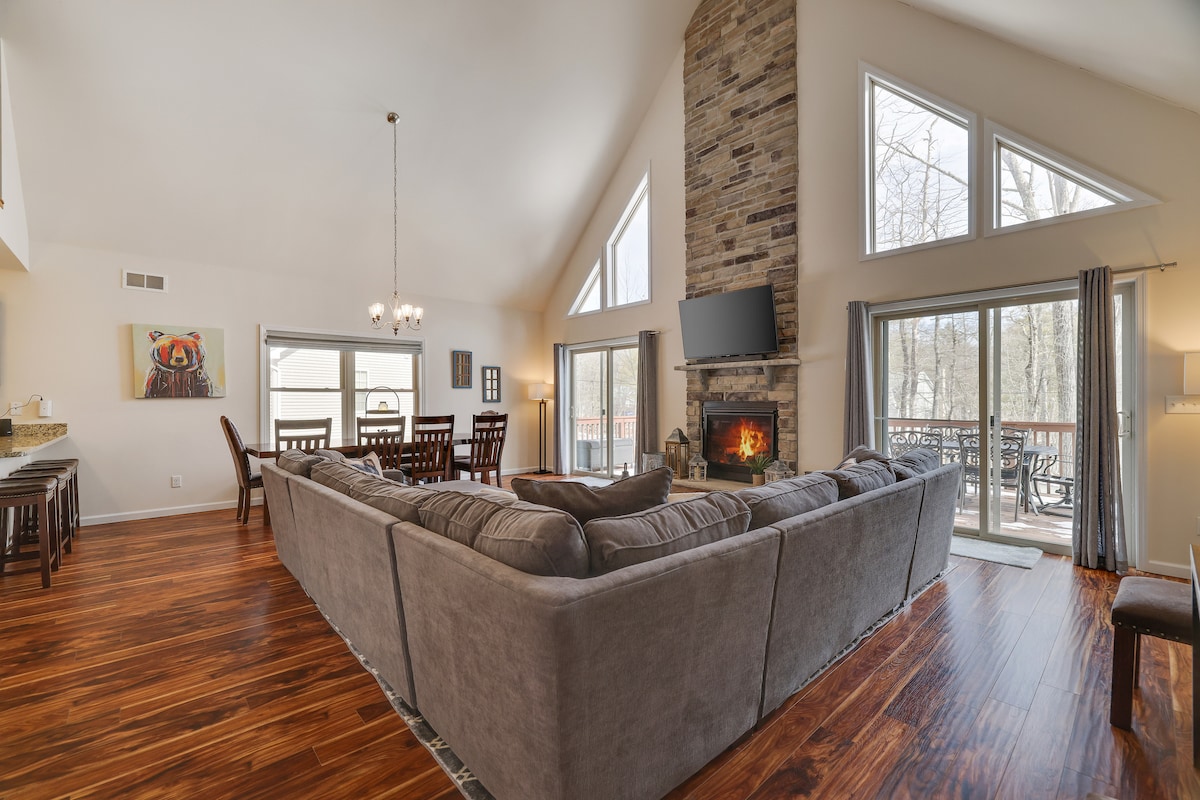 ¿Buscas una escapada a la montaña? Ven a escapar a nuestra casa de campo Poconos, que combina a la perfección la comodidad moderna y el encanto rústico en un entorno privado y boscoso. ¡Explora rutas de senderismo cercanas, disfruta de restaurantes locales, esquía, pesca, barco o simplemente abraza la tranquilidad de la naturaleza mientras te sientas junto al fuego! También disfrutarás de conexión Wi-Fi rápida, aire acondicionado y una chimenea de combustible de gel interior.
