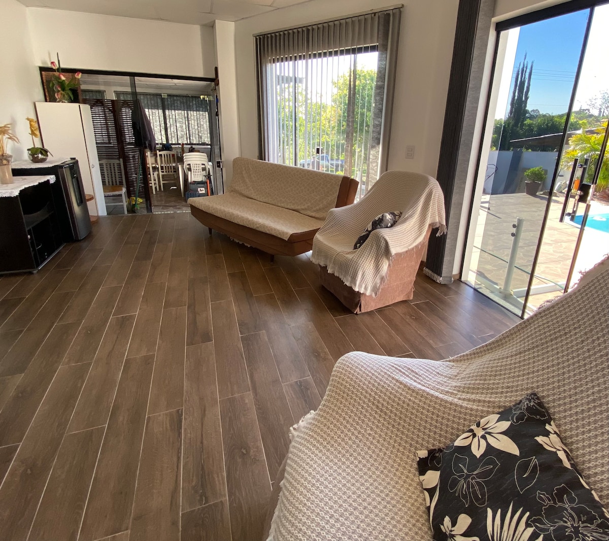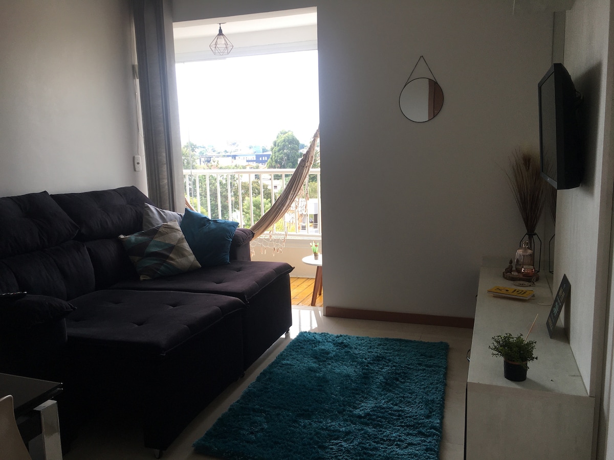 Disfrute de un fácil acceso a todo lo que necesita, bancos, supermercados, farmacias, en este apartamento muy bien ubicado. Con un dormitorio grande, tiene capacidad para 1 pareja en la cama doble y una persona más en una cama individual. También tiene un sofá con chaise en la sala. Amueblado y con todos los utensilios de cocina, cama y baño. El estacionamiento está cubierto. Acceso con 4 tramos de escaleras, sin ascensor. SOLO ACEPTAMOS RESERVAS A TRAVÉS DE AIRBNB.