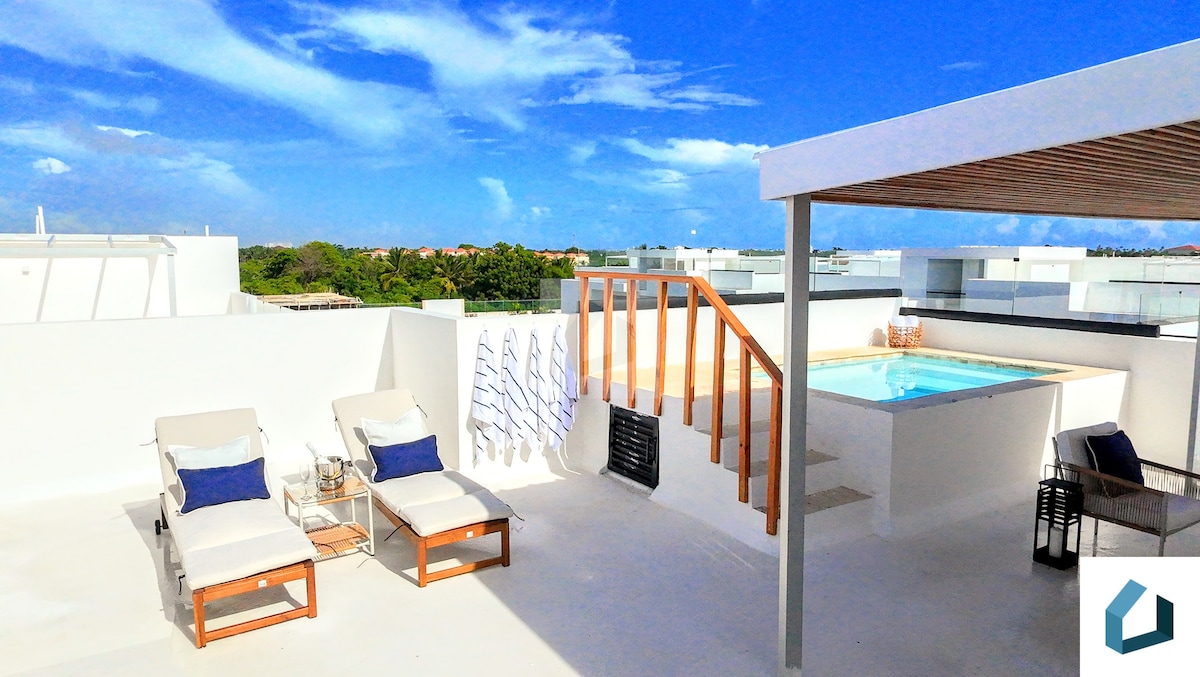 Espectacular Apartamento de lujo con piscina privada en la terraza. Un nuevo concepto de apartamentos en Punta Cana que te proporcionará confort, privacidad y seguridad para pasar tus vacaciones. Habitaciones amplias, cocina totalmente equipada, muebles de diseño, wifi de alta velocidad, check in online con la ultima tecnología. Una nueva experiencia para disfrutar de Punta Cana ! A 4 MINUTOS CAMINANDO DE LA PLAYA !!! Este alojamiento con estilo es perfecto para viajes en Pareja o Familias.