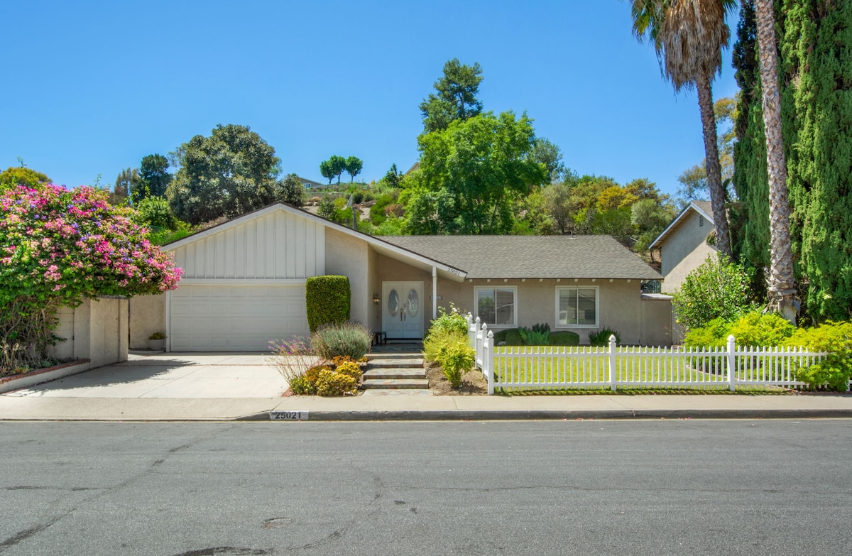 Our spacious family home has been recently remodeled and includes a large yard, spa, outdoor entertaining space, gourmet kitchen, views galore AND super comfortable beds! It is ideally located only 2 minutes from major freeway and is central to every SoCal attraction: beaches -- 10 minutes; Disney -- 30 minutes; SD Zoo & Legoland 45 minutes. Close to high-end shopping & restaurants. This is the perfect hub for you and your family.
