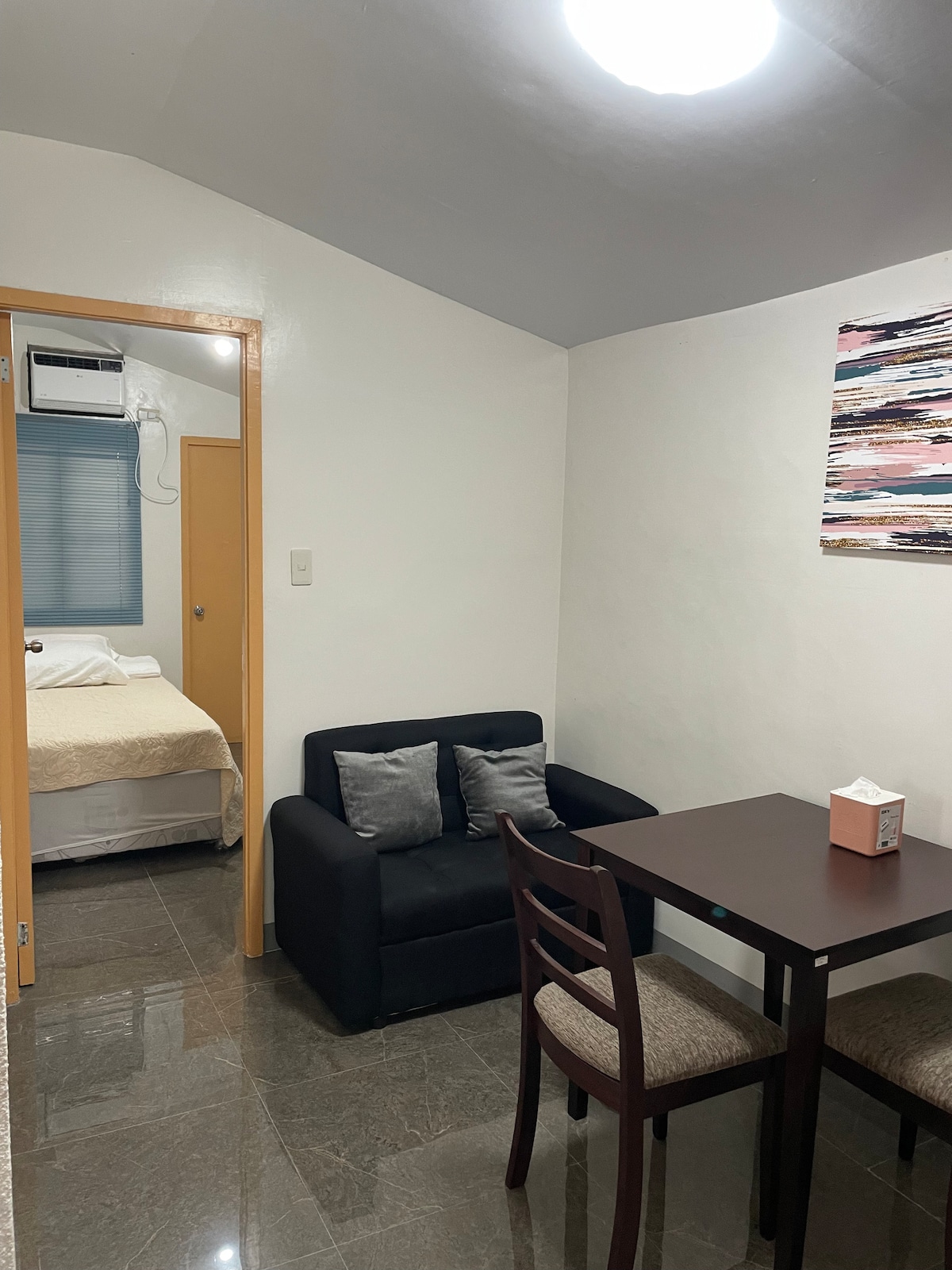 ¿Buscas la escapada perfecta? Un apartamento tipo estudio estéticamente agradable y acogedor cerca de Enchanted Kingdom, Nuvali, The Fun Farm y Tagaytay. Un lugar perfecto para disfrutar, relajarse y desconectar. Diviértete con toda la familia en este alojamiento digno de Instagram. Puedes utilizar nuestros servicios gratuitos como Netflix, wifi, así como la cancha de baloncesto y un parque para que los niños jueguen. Un hogar lejos de casa. Aquí, en casa de Katsu, estás exactamente donde tienes que estar. ¡Haz una reserva ahora mismo!