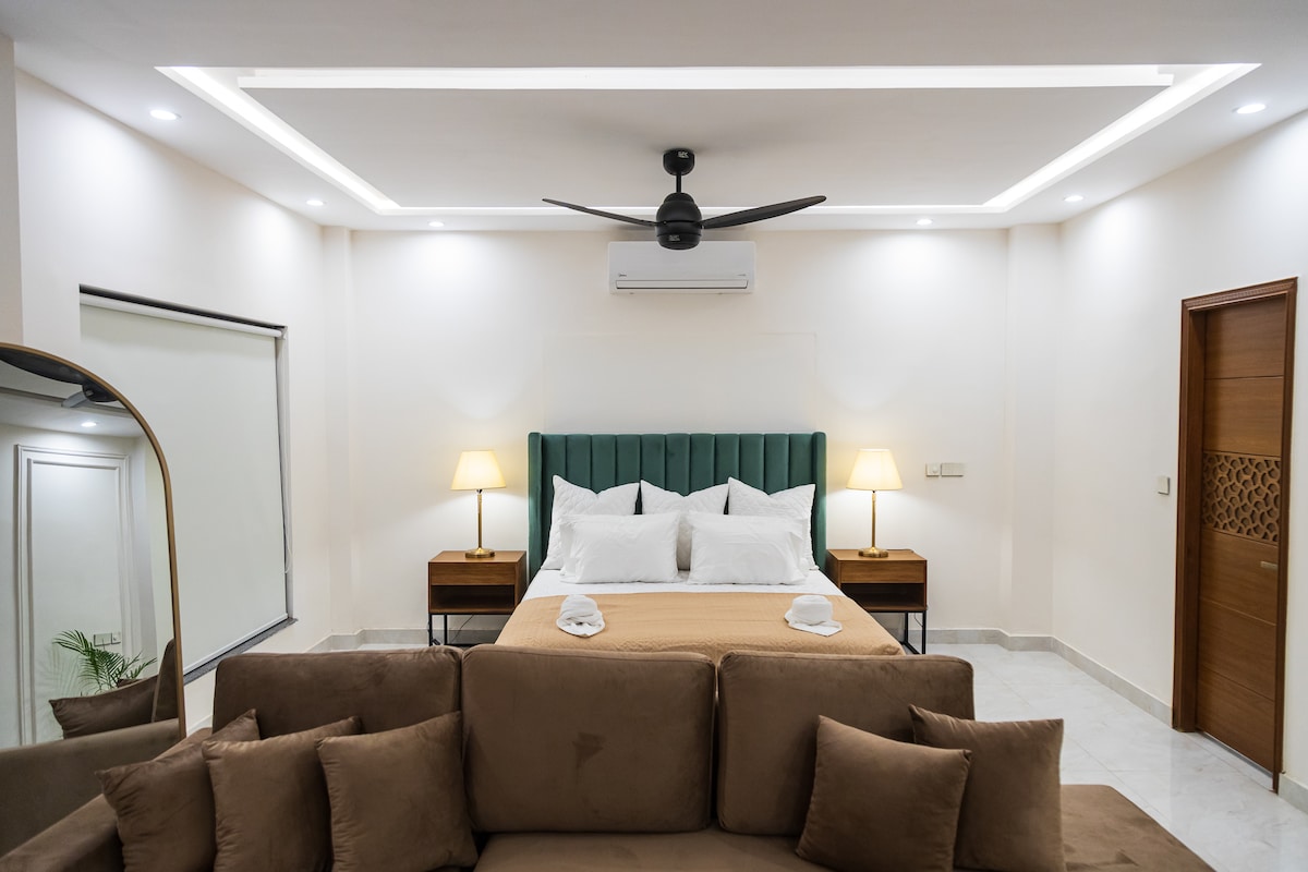 Entra en Obsidian, un departamento de lujo de un dormitorio meticulosamente diseñado para huéspedes que aprecian la elegancia, la privacidad y la comodidad. Envuelto en tonos profundos, iluminación ambiental cálida y una estética moderna y tranquila, Obsidian ofrece una experiencia a nivel de hotel con el alma de un refugio privado. Ubicado a pocos minutos de MM Alam Road, estás rodeado de los mejores cafés, restaurantes, tiendas y vida nocturna de Lahore mientras disfrutas de una estancia tranquila y privada.
