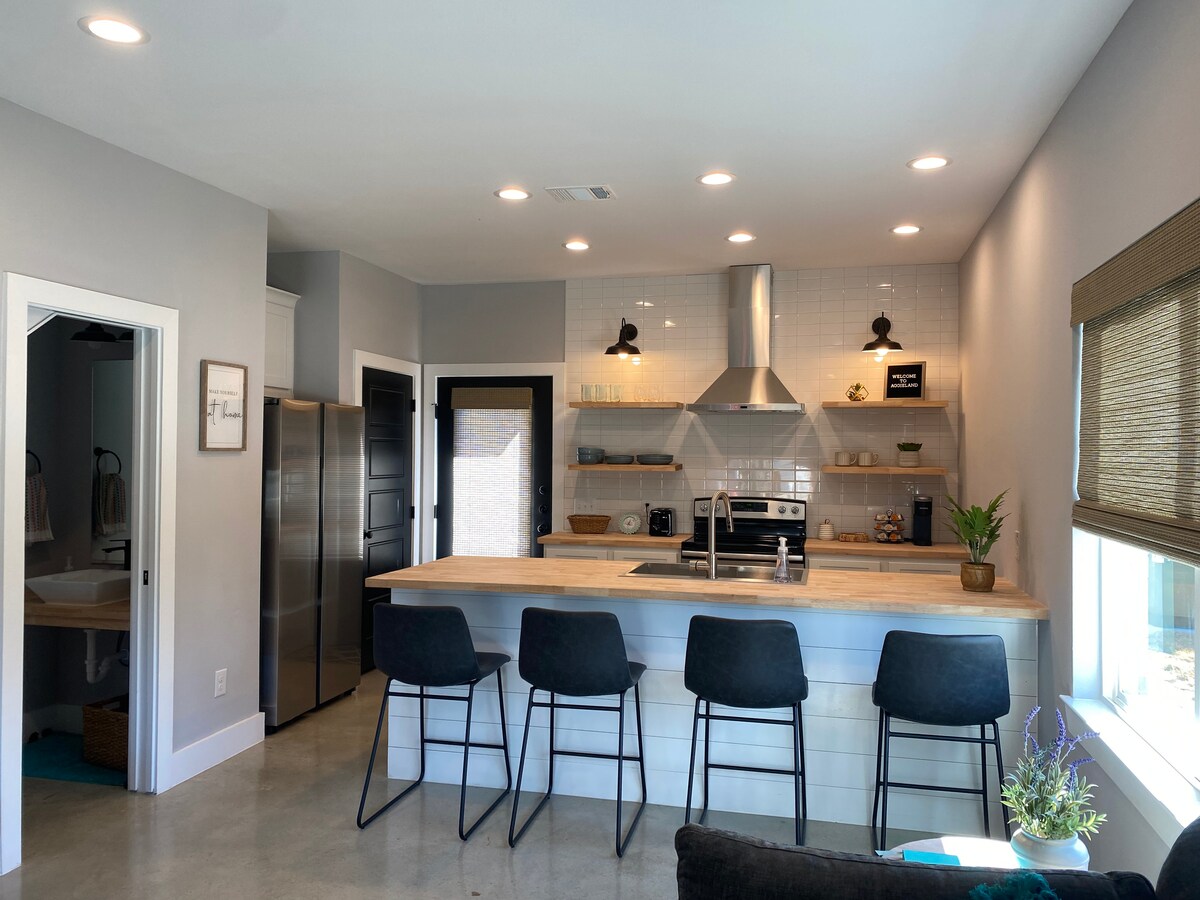 Relájate en una nueva casa adosada «Boho Modern» ubicada en el centro histórico de Bryan y a poca distancia a pie de Ronin, Black Water Draw, RX Pizza, The Village, Cilantro, el mercado de agricultores y muchos más restaurantes. Ambos dormitorios tienen camas tamaño king y la habitación principal/sala de estar tienen televisores de 50 pulgadas. Inicia sesión en tu cuenta personal de streaming o utiliza nuestro Hulu, Disney+ o ESPN+, como cortesía. Relájate en el patio trasero privado o cocina en la hermosa cocina que incluye una cafetera Keurig con cápsulas y cremas.
