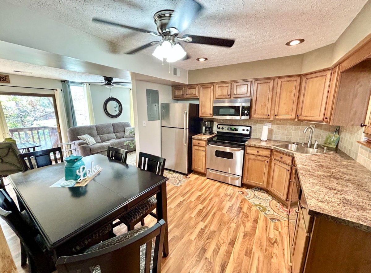 Choose to relax, have fun, or both within this wonderful community with your friends and family! We look forward to welcoming you into our home. - Newly renovated TOP FLOOR condo within a golf cart lake resort - 3 bd 2 ba - Lake access on resort - Private enclosed deck - Pool, golf, volleyball, tennis, pickle ball - Restaurant onsite (closes after summer) - Live music on particular dates - Golf cart rentals - Private boat launch - Boat rentals - Short distance from restaurants, bars, and fun