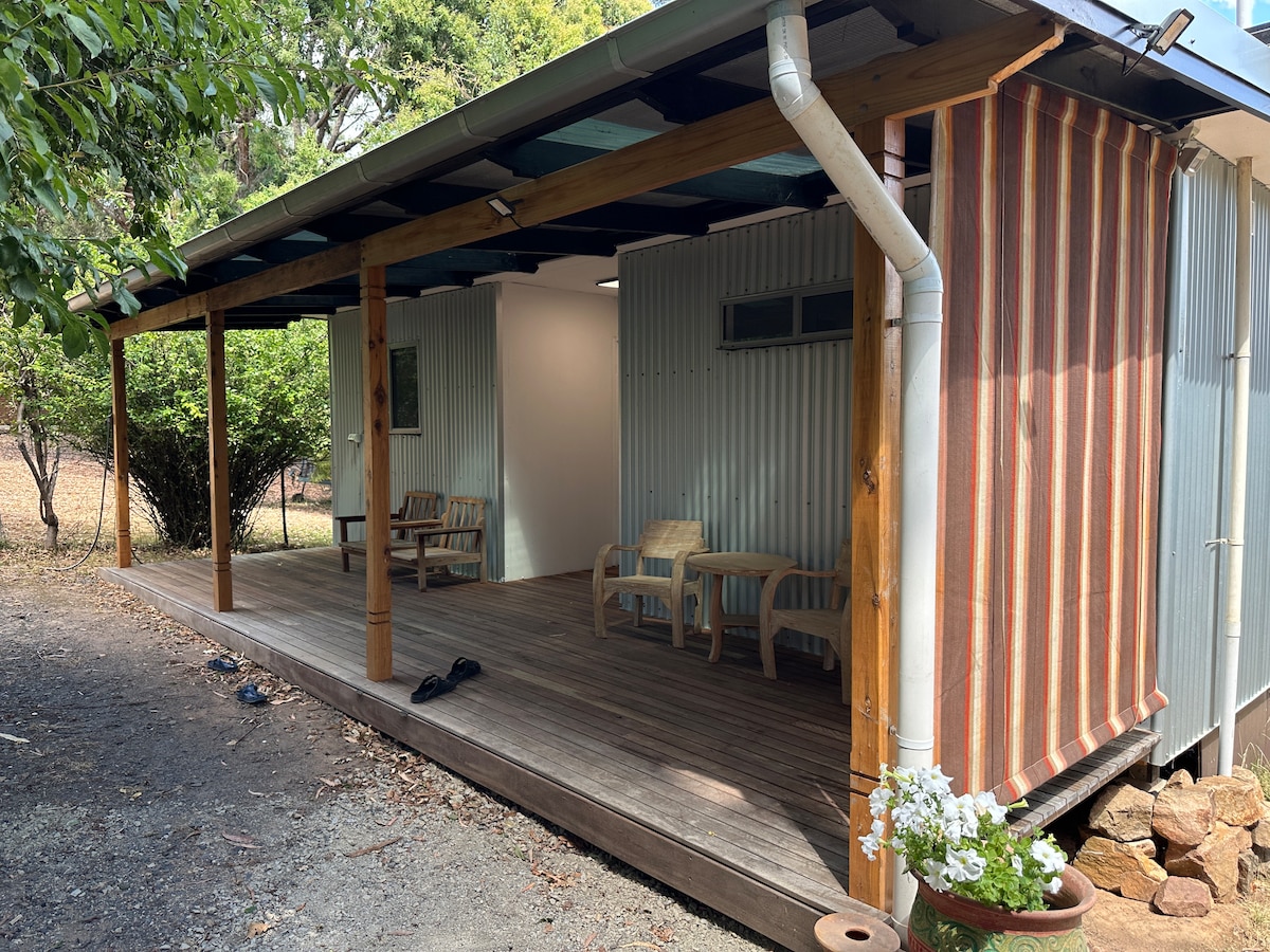 Welcome to Myrtle's Hut – a wild and serene Eco Escape nestled in a quiet paddock surrounded by swaying gums and acacia trees, within a National Park. Myrtle’s Hut is a custom-built eco cabin designed for those craving a deeper connection with nature. This unique indoor/outdoor design blends rustic charm with thoughtful touches of luxury - a slow sustainable stay.