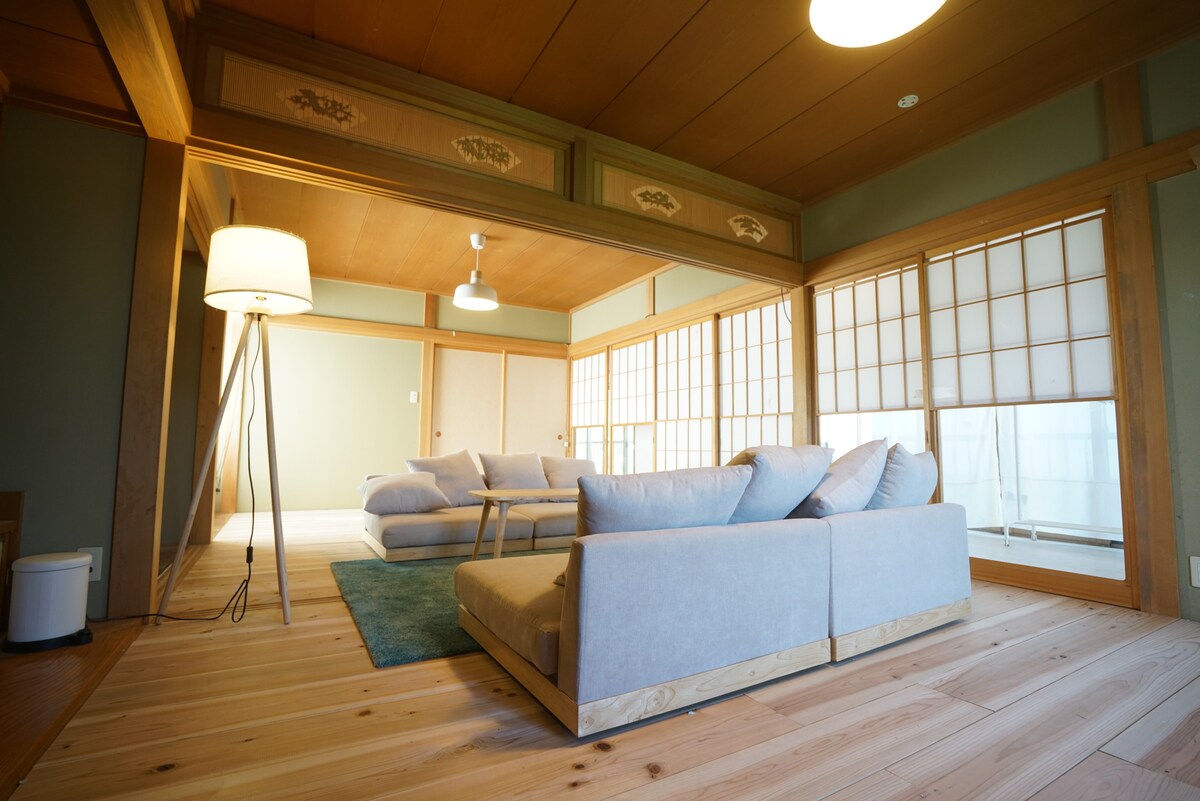 Una antigua casa construida a finales del período Edo, pero una vez que entres encontrarás un interior japonés moderno. ¿Por qué no experimentar la buena cultura japonesa de antaño? Aléjate de las discusiones de la ciudad y disfruta del lento flujo del tiempo. Las comodidades incluyen un televisor grande, aire acondicionado, lavadora de tambor (con función de secado) y secador de pelo. La cocina está equipada con refrigerador, horno, platos, cubiertos y la mayoría de los utensilios de cocina y condimentos.
