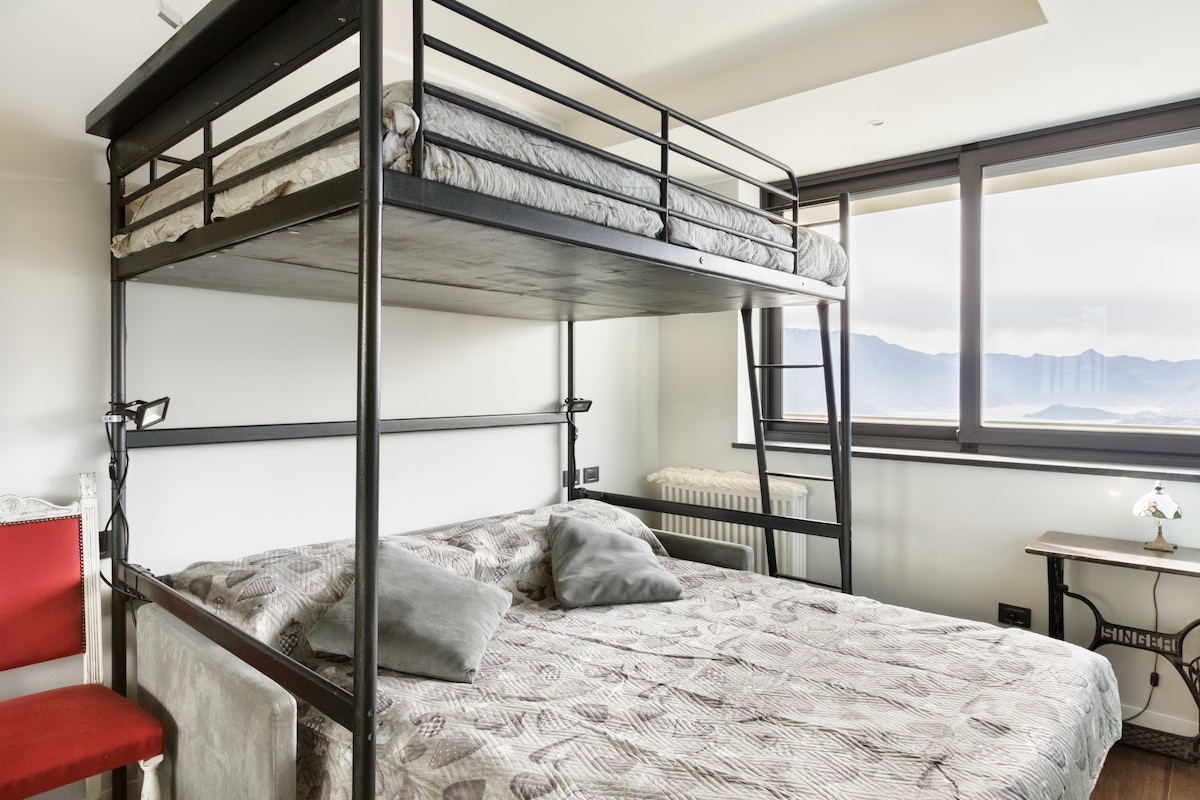 El estudio se encuentra justo enfrente de la ciudad de Como, con una vista de 180 grados del lago. Se puede llegar al centro de la ciudad de Como en coche, bicicleta, autobús o incluso en ferry, ya que hay un servicio de transporte público de ferry disponible. Este servicio, ubicado a 50 metros de nuestra propiedad, te llevará directamente al centro de la ciudad de Como en 8 minutos y a los otros destinos del lago. Aparcamiento privado disponible en el sitio. CIR: 013075-LIM-00001