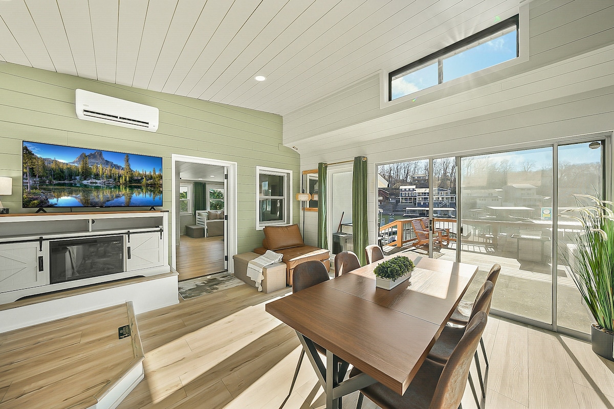 Casa entera en el lago lista para tu próximo retiro en el lago con familiares o amigos. ¡Amplia sala de estar que incluye espacio en la terraza al aire libre con un muelle privado y kayaks para su uso! Observa la puesta de sol en el muelle mientras haces una barbacoa o junto a la chimenea de gas. Acurrúcate junto a la chimenea de leña. **NUEVA opción de ALQUILER DE BARCOS Tritoon o espacio para atracar tu barco. Cerca del Strip, tiendas de comestibles y restaurantes. También hay minigolf, karts y una bodega cerca. Perfecto para un fin de semana o una escapada larga.
