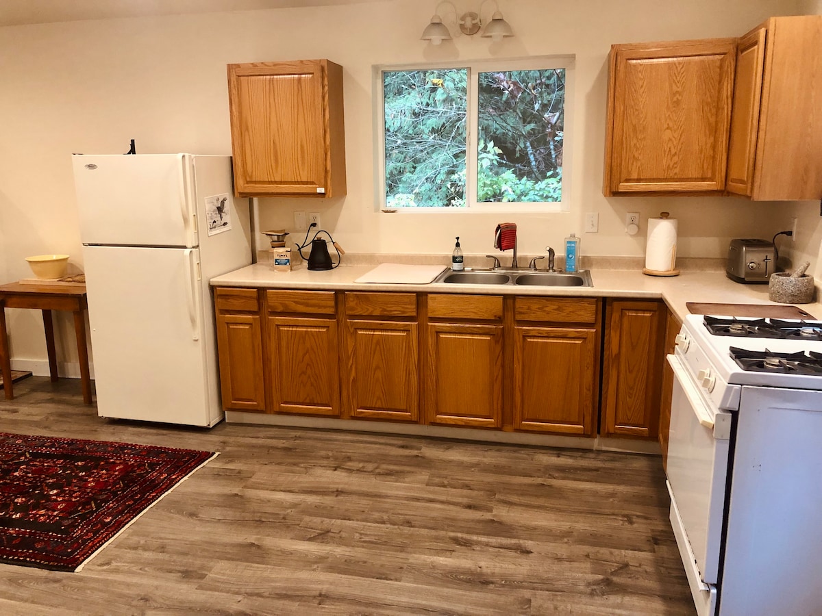 SUITE DE INVITADOS CON ENTRADA PRIVADA. Acogedora y elegante cama tamaño queen con baño completo y cocina americana, ubicada frente a Hundred Acre Woods (parque urbano con senderos). Cerca de Fairhaven (1,5 millas), Bellingham, WWU e I-5. Camina por el sendero interurbano hasta el histórico Fairhaven, o hasta el sistema de senderos Chuckanut. ¡Caliéntate después de disfrutar de senderismo de clase mundial, ciclismo o diversión en la montaña! ✨Cerca de la ruta del autobús 🚘A 45 minutos de Canadá Somos anfitriones y damos la bienvenida a personas diversas e increíbles de todo el mundo, como tú.