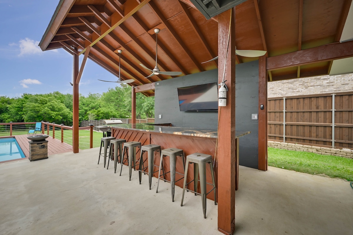 Descubre la mejor escapada frente al lago: un oasis moderno y totalmente renovado con un bar al aire libre, un televisor de 65 pulgadas, un amplio jacuzzi y una lujosa piscina. Nuestra mansión frente al lago Lewisville es un lugar para crear recuerdos inolvidables con tus seres queridos. Con tres suites principales, cada una con baños tipo spa, incluido un baño principal en la planta superior con una colosal ducha de 22 cabezales y una bañera de hidromasaje para varias personas, tu estancia promete relajación y lujo como en ningún otro lugar. Te encantará