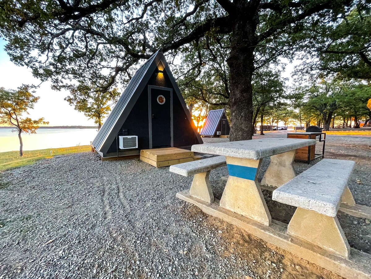 Tucked along the shoreline, the Kimas at Paradise on Lake Texoma offer a romantic, nature-filled escape with unbeatable lake access. Enjoy a private boat ramp, day-use area for swimming, kayaking, or fishing, and a setting that doesn’t get closer to nature—short of tent camping. These waterfront A-frame Kimas feature a full bed, AC/heat, Bluetooth speaker, fire pit, outdoor kitchen with BBQ grill, and indoor/outdoor seating. Linens are provided, with bathhouse facilities just a short walk away.