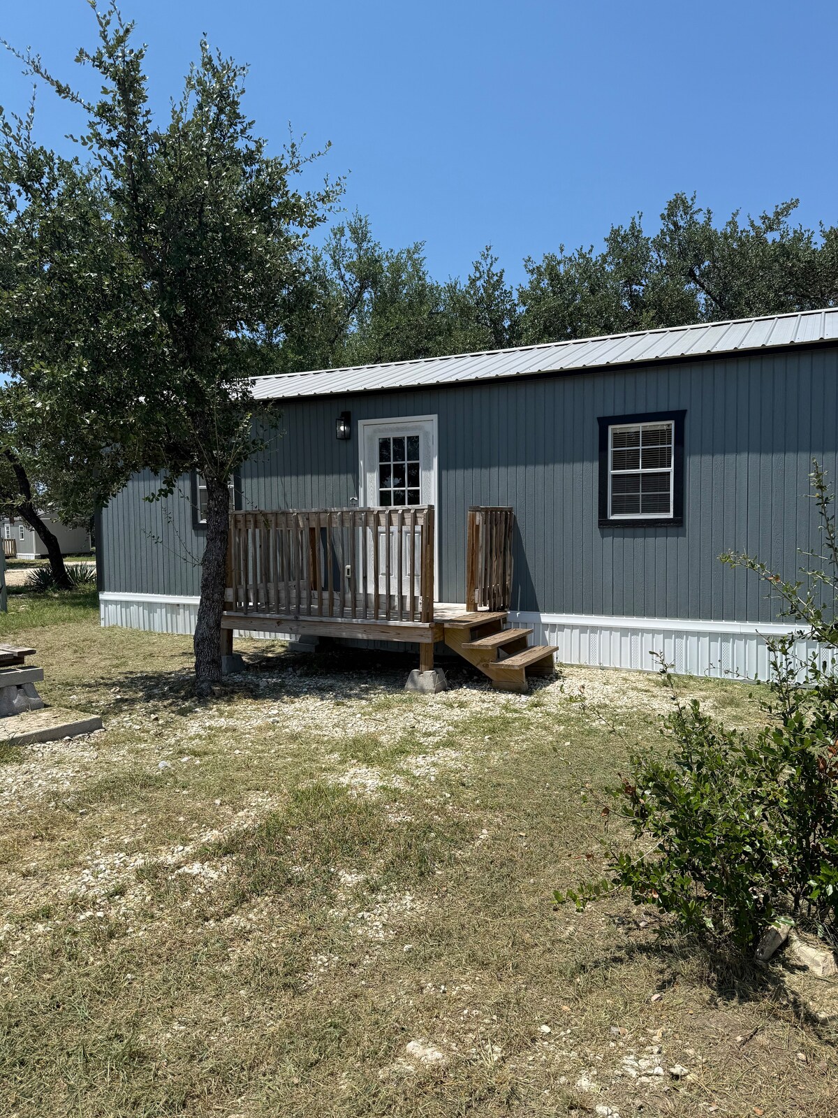 Step into one of the cutest, coziest, homiest little cabins you could find! From the time you walk through the door you will be enveloped in a sense of home. The space may be small, but windows on every wall, the peaked ceiling, and the relaxing minty and gray color scheme inspire the feeling of openness! Perfectly located in the middle of the alluring Texas Hill Country, you'll be ready for any adventure when you discover the cabin that will become the sweetest spot in your travels!