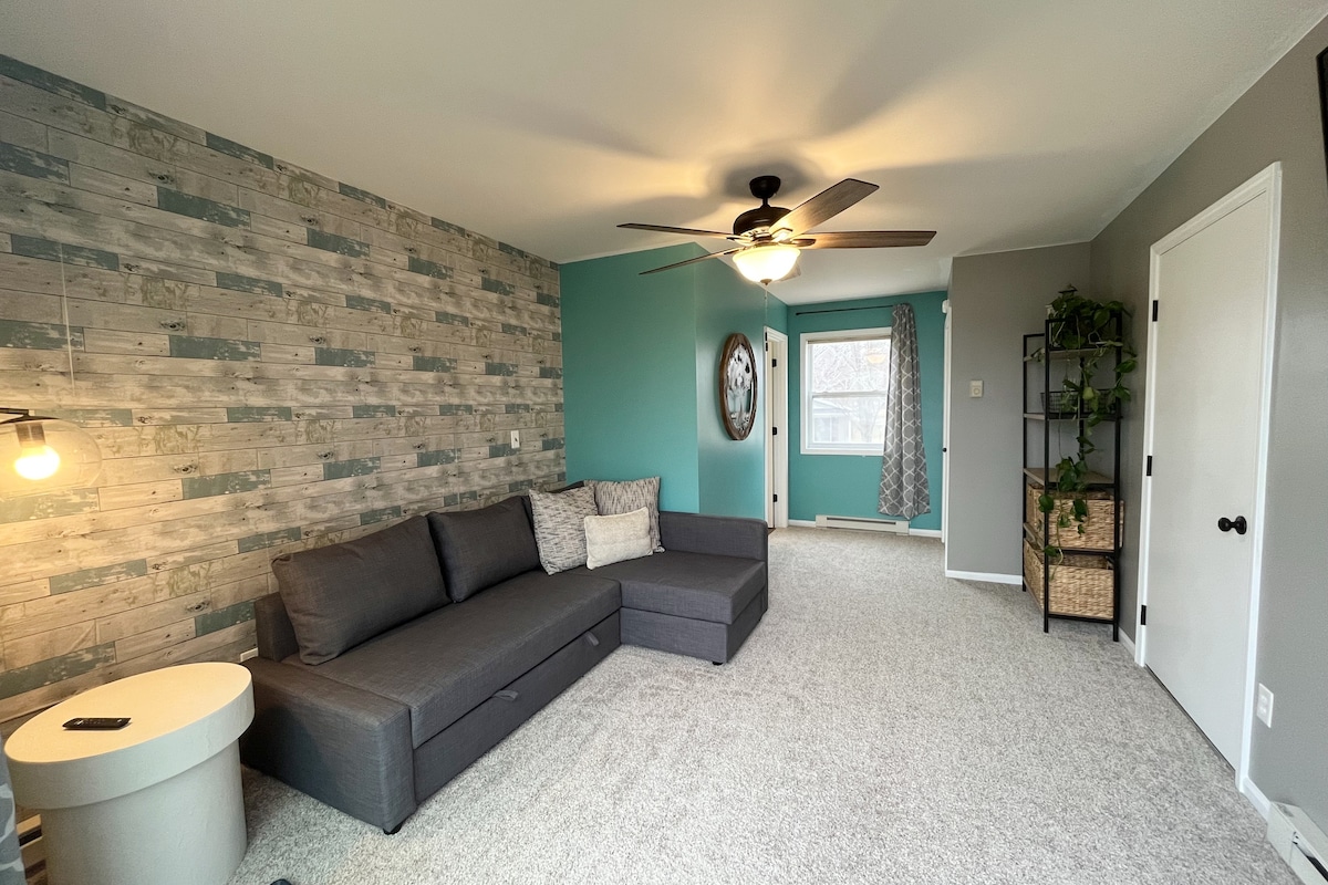 This Lansing home has been fully remodeled while holding its vintage charm in a quiet neighborhood on a dead-end street. It is close to all that Lansing has to offer, 2 miles to the edge of MSU campus and 1 mile to downtown Lansing. 1st floor feels open and cozy with a pull-out sofa and large TV, open concept sitting room near the kitchen, full bathrooms on both the 1st and 2nd floor, queen bedroom on main floor, 2 more bedrooms upstairs w/ King and Full beds. And a nice front porch to relax.