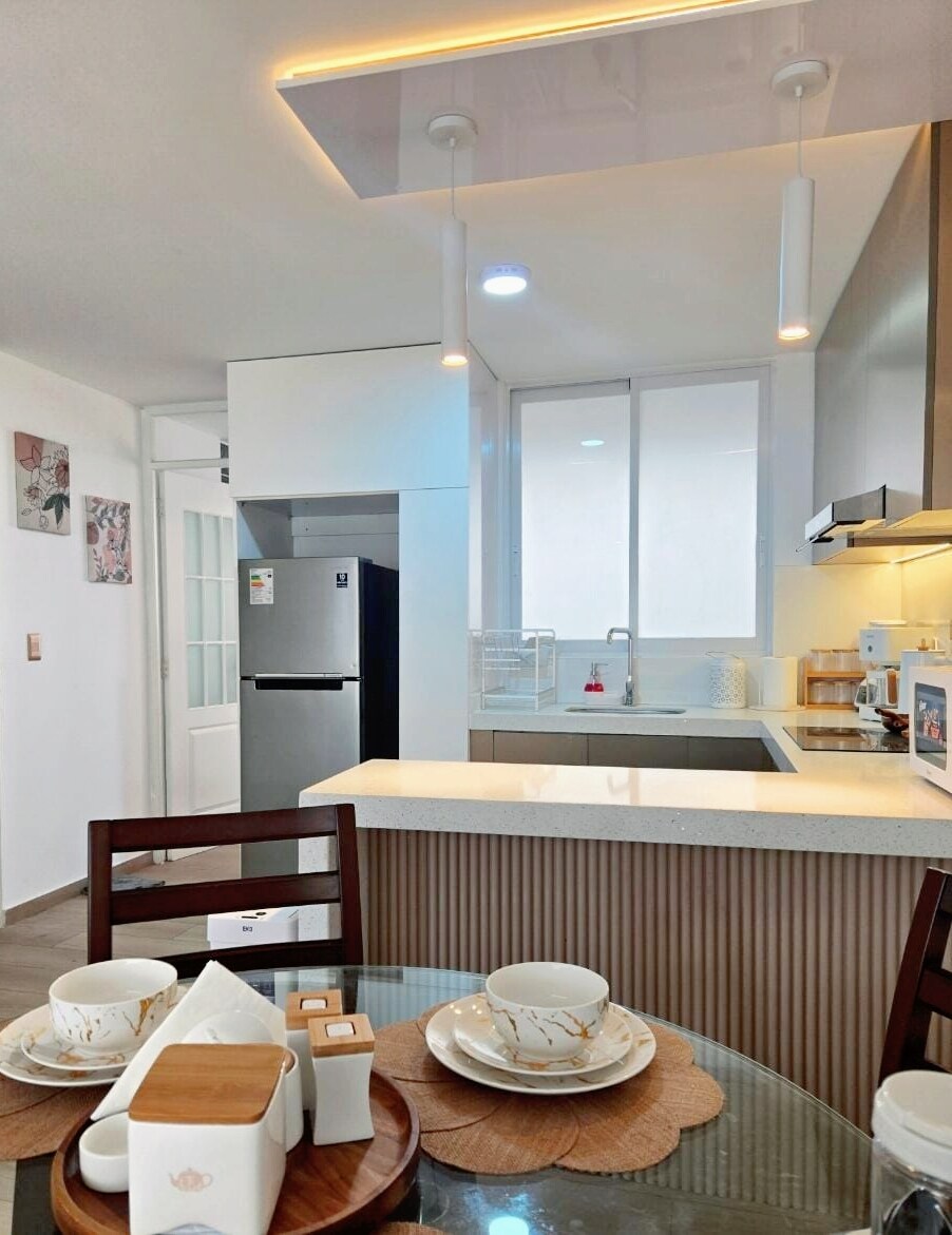 Disfruta de un espacio cómodo y funcional ideal para estadías cortas o largas. El mini departamento cuenta con: 1 dormitorio independiente para tu descanso. Sala - comedor acogedora, perfecta para relajarte o compartir. 1 baño completo con todas las comodidades. Un lugar práctico y bien distribuido, pensado para que te sientas como en casa. Ideal para parejas, viajeros de trabajo o quienes buscan comodidad en un ambiente privado. Hermoso departamento en el piso 12 – último nivel del edificio