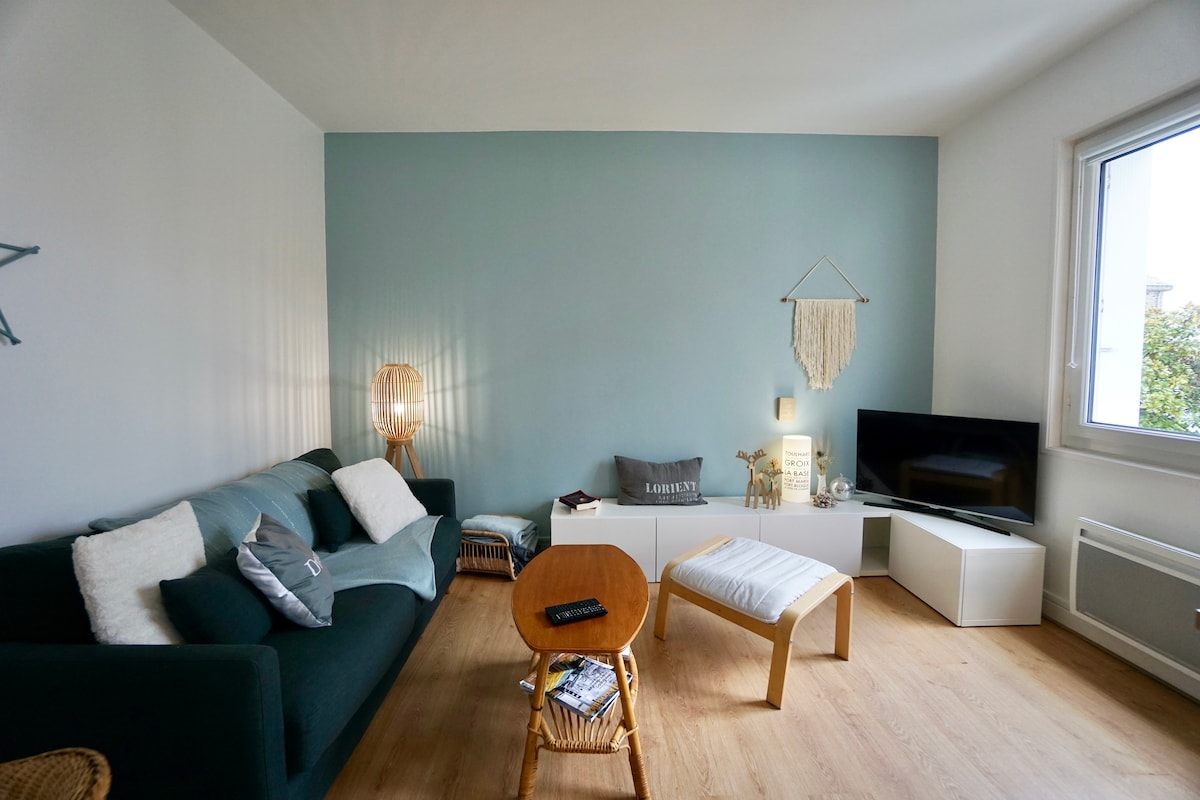 En el corazón del centro comercial de la ciudad de Lorient. NUEVO -cama doble reemplaza el sofá cama -Acceso autónomo con caja de llaves -Ropa de cama incluida -Plazas de aparcamiento gratuitas en la calle (limitadas a 1 hora y media de 9:00 a 12:00, de 14:00 a 18:00) + aparcamientos en la plaza Alsace Lorraine, Jules ferry, subterráneo Nayel -Estación de tren y puerto a menos de 15 minutos andando. -Pasillo de entrada apto para bicicletas, cochecitos... -Café, té, máquina de Espresso dolce gusto, hervidor de agua, tostadora -Segundo piso sin ascensor