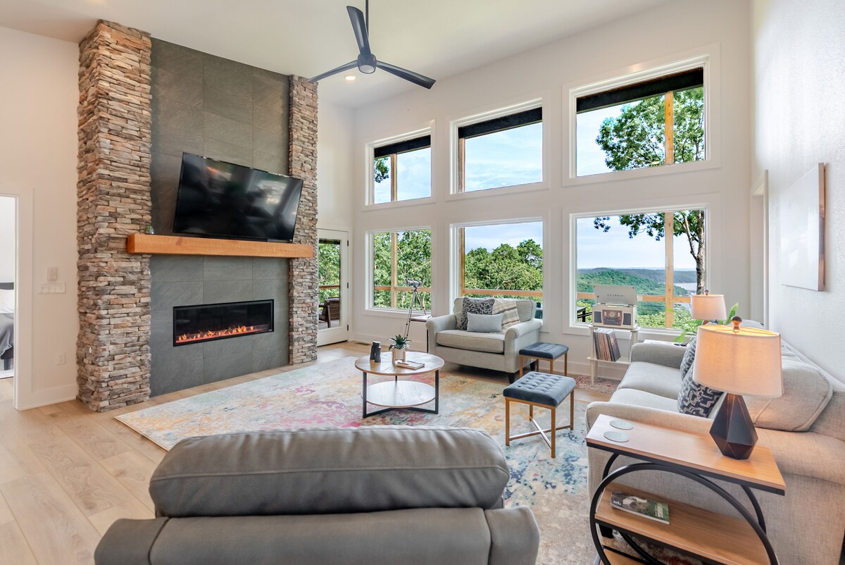 ¡Escápate a una nueva casa del árbol de 2 pisos cerca de Beaver Lake! Disfruta de las vistas a la naturaleza desde la terraza con una bañera de hidromasaje empotrada, mantente cómodo con una chimenea eléctrica y cocina en la cocina totalmente equipada. Este refugio único ofrece 2 dormitorios (uno es un loft al que se accede por escalera), 3 camas y capacidad para 5 personas. Con wifi rápido y un sistema HVAC mini-split para el control climático específico de la habitación, te sentirás aislado pero cerca de las atracciones de Rogers. ¡Perfecto para una escapada tranquila y moderna!