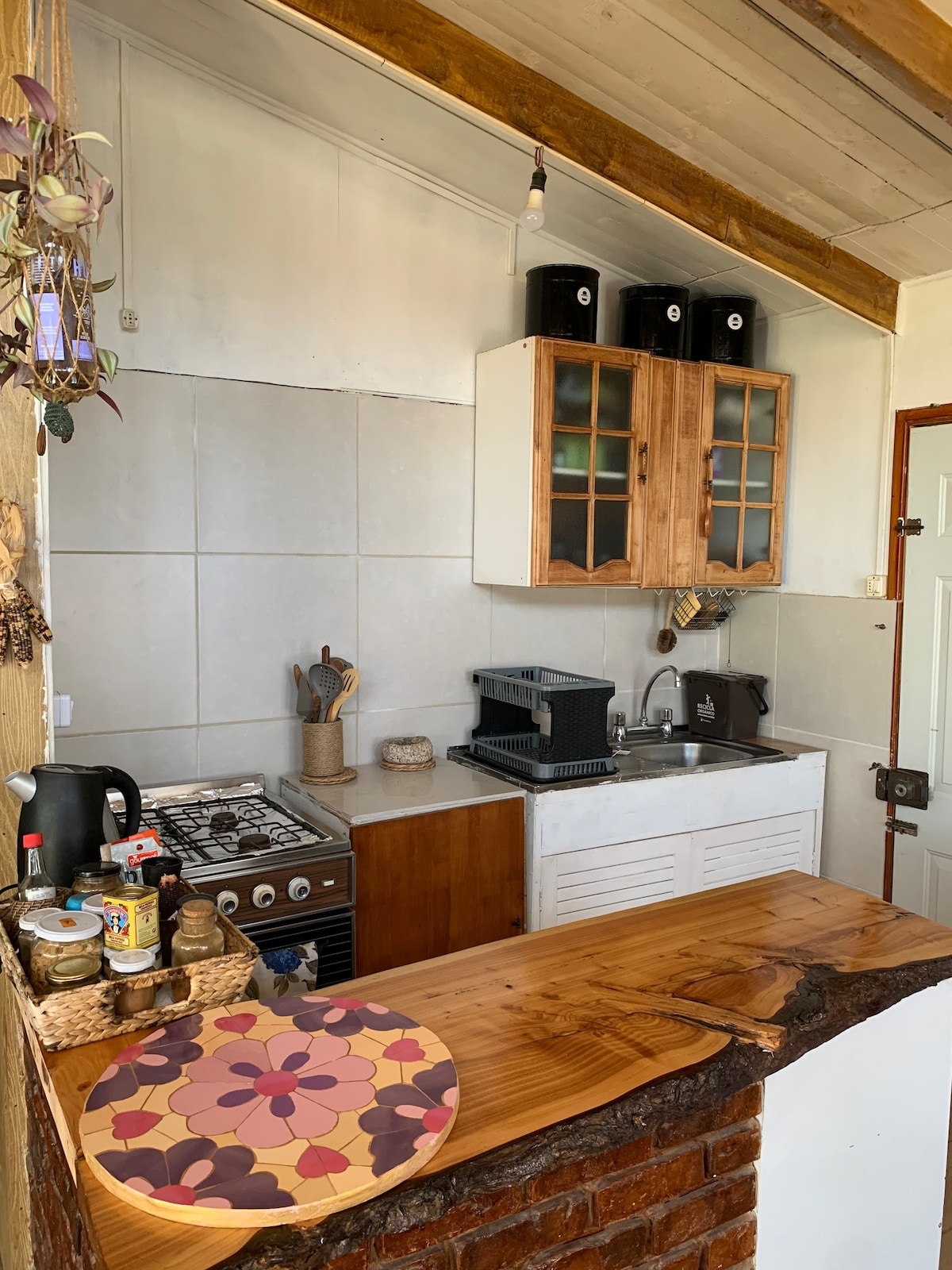 Disfruta de la sencillez de este alojamiento tranquilo y céntrico. Cuenta con Tinaja de agua caliente a leña totalmente disponible para su uso. En el lugar encontraras leña y pastillas de encendido rápido solo debes encender el fuego esperar una hora y disfrutar. No tiene ningún costo adicional. En caso que no desees encenderla tú, puedo darte un contacto que lo hará por ti con un cargo adicional que pactas con él. Los horarios de Check in y Check out son flexibles.