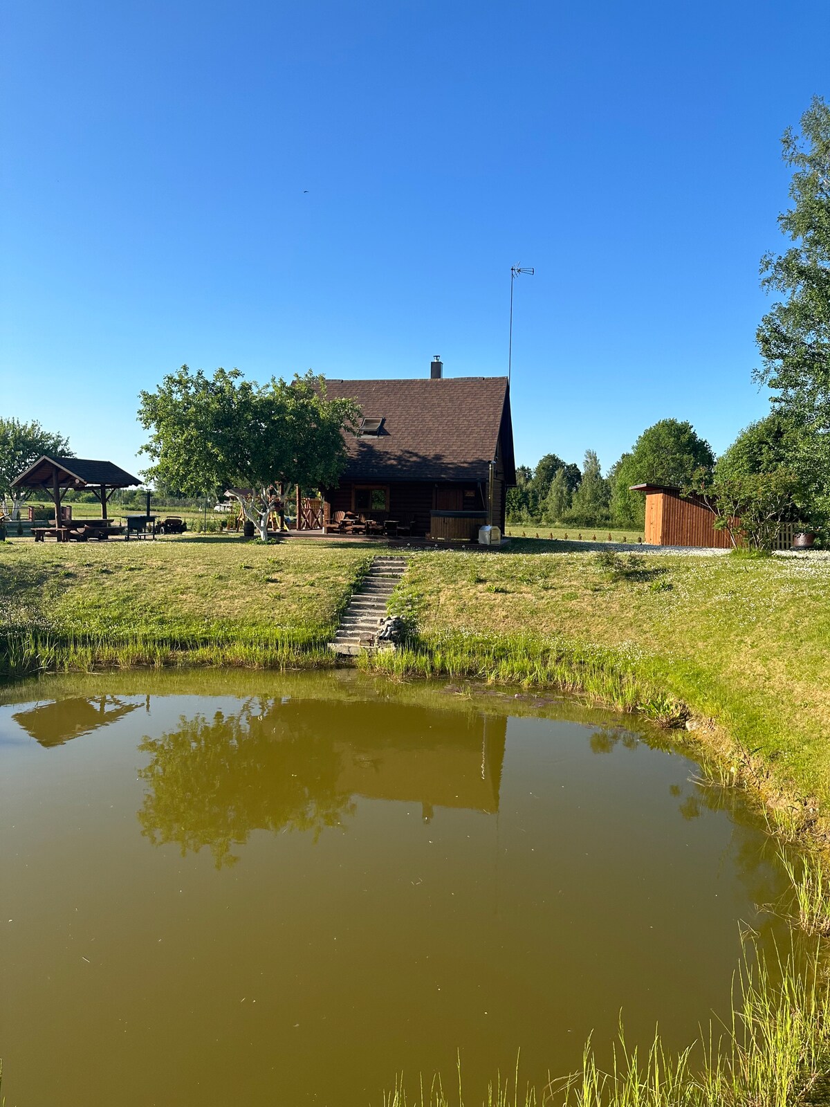 Un lugar acogedor con todo lo que necesites. Lugar rodeado de pinos y río, pero a solo unos minutos de la ciudad. Puedes utilizar nuestro jacuzzi por un cargo adicional: 50 EUR/día +20 EUR cada día siguiente. Ofrecemos una variedad de cosas que hacer: bicicletas, remo, catamarán, paseos en yate y barco, diversión acuática con esquís y colchonetas de goma, motos acuáticas y otras por un cargo adicional. Ofrecemos alquiler de motos y coches, si es necesario. También puedes utilizar nuestros juegos, rompecabezas, voleibol, bádminton, etc. que tenemos de forma gratuita.