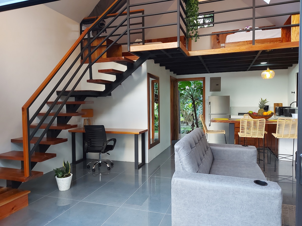Un hospedaje para escapar de la rutina y conectar con la naturaleza, tiene un diseño moderno con una cálida decoración, rodeado de naturaleza donde podrás observar muchas aves, una linda vista al volcán, balcón, terraza, una refrescante piscina y jacuzzi privado. Un lugar ideal para parejas, amigos o para que puedas teletrabajar tranquilamente. Ubicados estratégicamente cerca de todas las actividades principales y a tan solo 2.5 km del centro de La Fortuna y a 1 km de La catarata La Fortuna.