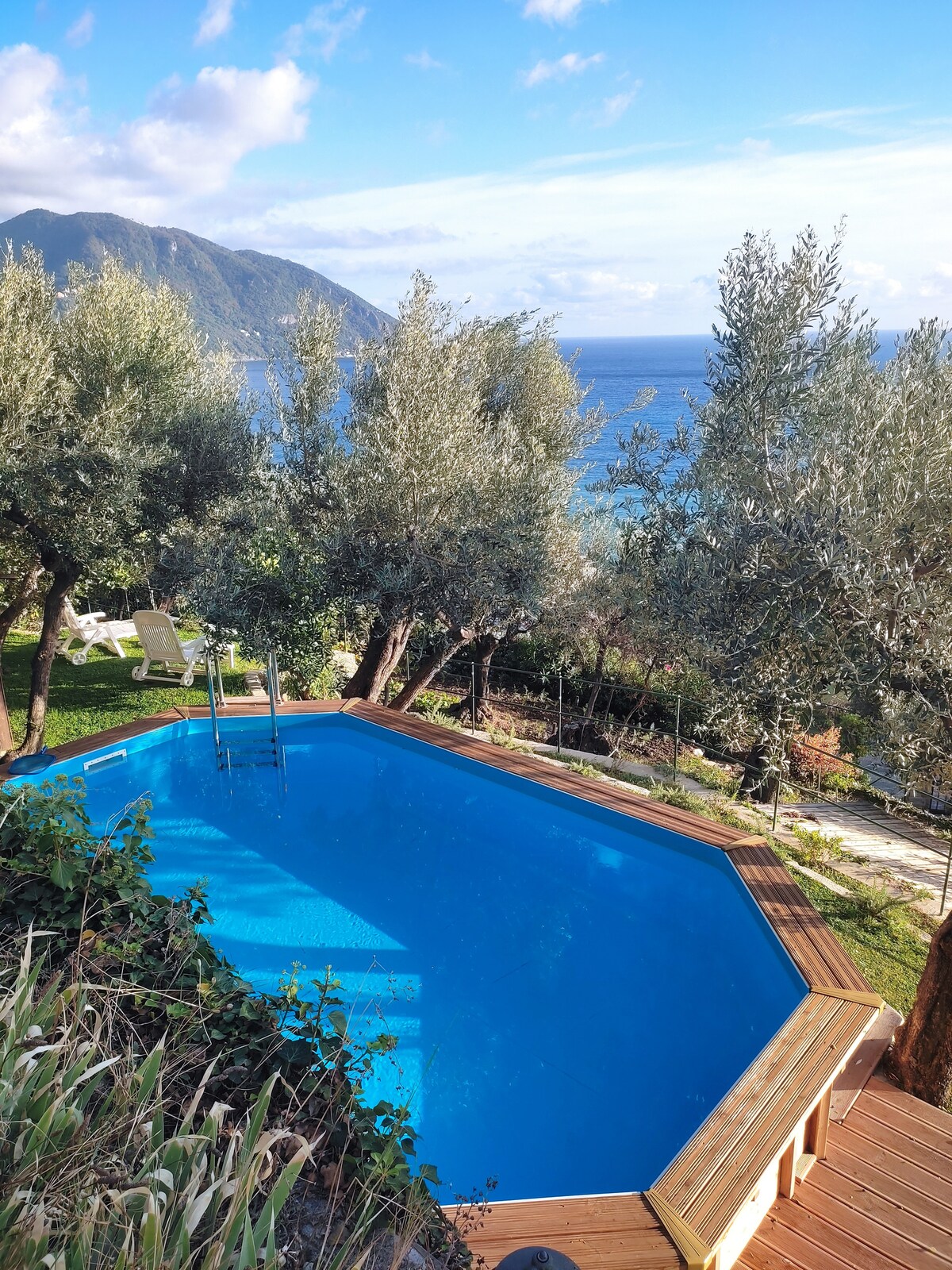 La casa es totalmente independiente, está rodeada de verde olivar de Liguria y ofrece unas vistas impresionantes del Golfo Paradiso. El panorama que se puede disfrutar desde las terrazas y ventanas se abre desde el extremo occidental de Liguria hasta el Monte de Portofino y, en los días despejados, hasta el archipiélago toscano y Córcega. El mar (500 m.) Recco (1200 m) y el Parque Nacional de Portofino (3 km) son accesibles en coche y a pie, con paseos panorámicos; Génova-Nervi está a 12 km (SS1 Aurelia)