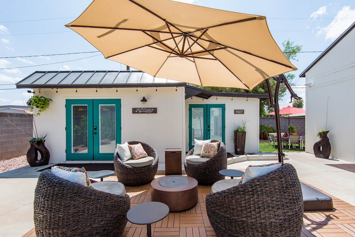 Disfruta de una experiencia elegante en este lugar céntrico. ¡La cama principal es tamaño KING, el sofá cama es de tamaño QUEEN! Tiene una freidora de aire y microondas para cocinar, nevera de tamaño completo. Junto a la Universidad Banner Minutos aproximados: 6-8 - aeropuertos, MLB y NBA arenas 15-20 - Old Town Scottsdale, ASU y State Farm Stadium 10-12 - Entrenamiento de primavera/ Casino AZ Este Airbnb está listo para una gran estadía. Intentamos hacer un esfuerzo adicional, así que si alguna vez necesitas algo, ¡solo tienes que preguntar! Tienes tu propio oasis privado.