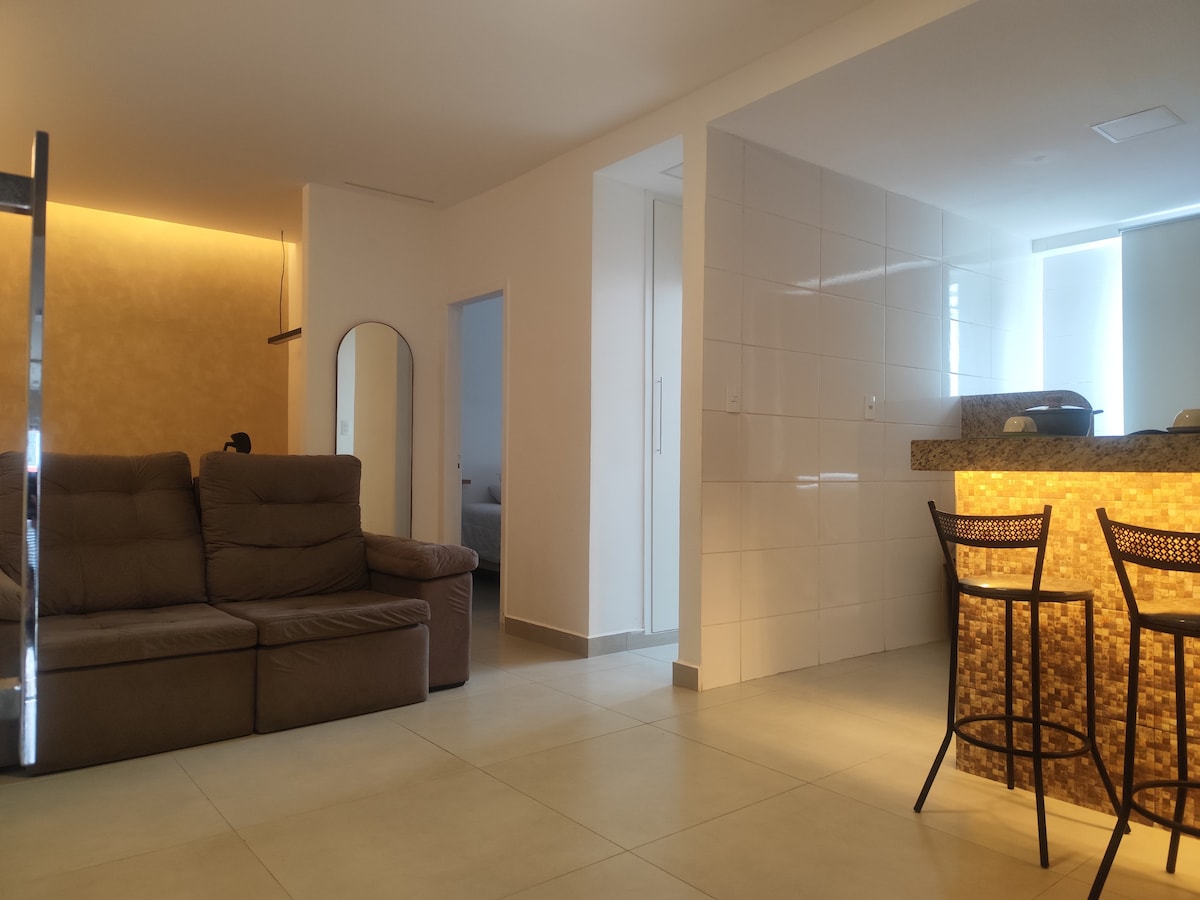 Apartamento amplio, cómodo, excelente ubicación: en el centro y a 5 minutos en coche de la UFLA y la UNILAVRAS Luminoso y ventilado, ubicado en una calle tranquila y segura Cuenta con: ► Wifi ►3 dormitorios. Suite/semi-suite cama doble, 1 dormitorio con dos camas Amplia ► sala de estar con cómodo sofá cama, Smart TV de 55" ► Cocina completa integrada con la sala de estar ► Purificador de agua ► Mesa y silla de estudio ► Zona gourmet con parrilla y encimera ► Ropa de cama y baño ► Secador de pelo
