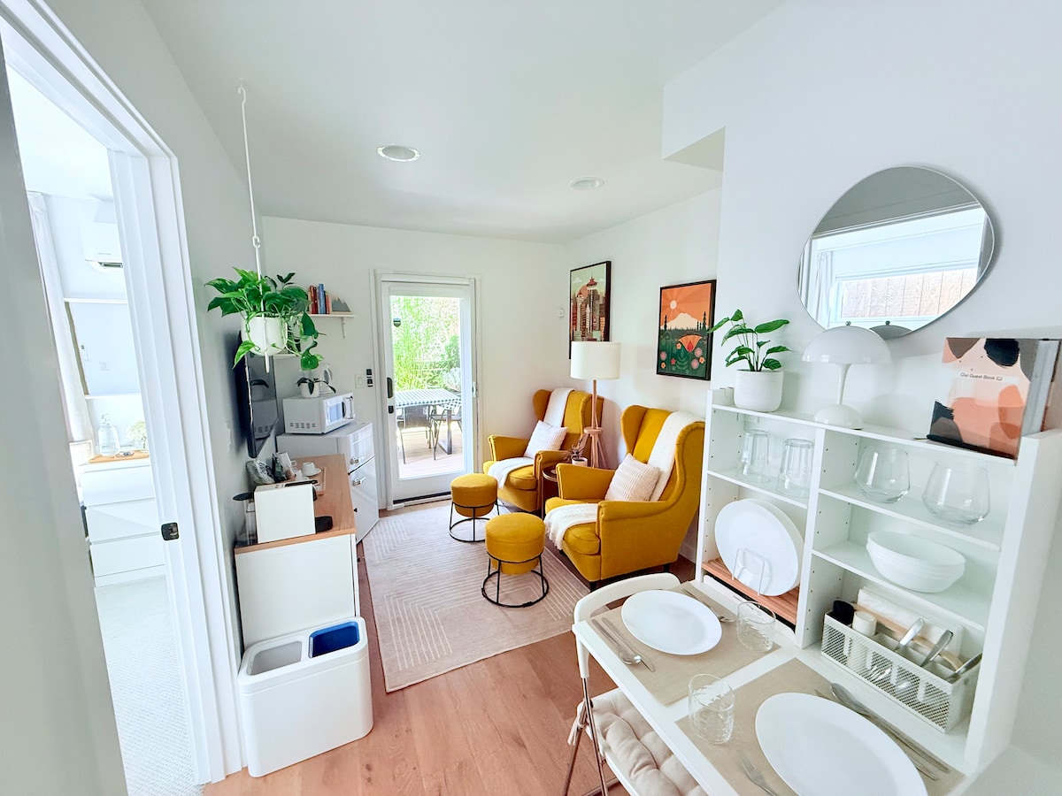Alójate en el corazón de Ballard en nuestro estudio Oasis privado en la 1ª planta con registro autónomo y una cómoda cama tamaño king. Disfruta de un aparcamiento privado con un cargador de coches eléctricos de 50 amperios de última generación. Camina 3 minutos hasta la calle Market con sus restaurantes, bares y tiendas de moda, o súbete al transporte público en la esquina. Explora la escena turística de Ballard, visita la escalera de peces de las esclusas o relájate en el parque de la playa Golden Gardens, todo a un corto paseo en bicicleta o a pie. Disfruta de la comodidad urbana en un barrio vibrante.