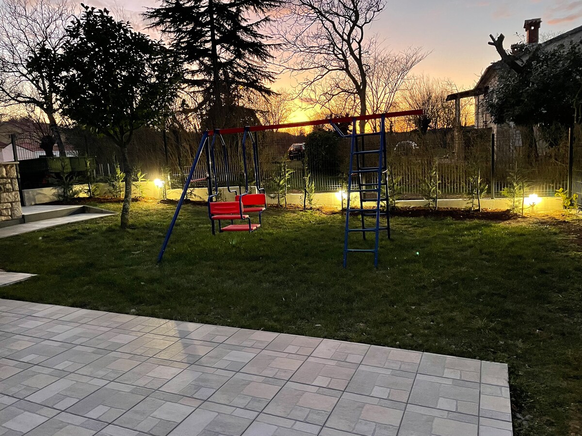 Relájate y disfruta de los tranquilos alrededores mientras te refrescas del calor del verano en la piscina. Los huéspedes tienen acceso a una parrilla de leña junto a la cocina de verano, para que puedan disfrutar sin preocupaciones de todo el día al aire libre. Hay una ducha exterior y un aseo junto a la piscina. Por la mañana y al atardecer, los huéspedes pueden relajarse en la amplia terraza con una maravillosa vista de la montaña Učka y disfrutar de los amaneceres y puestas de sol. Los niños disfrutarán especialmente del parque infantil.