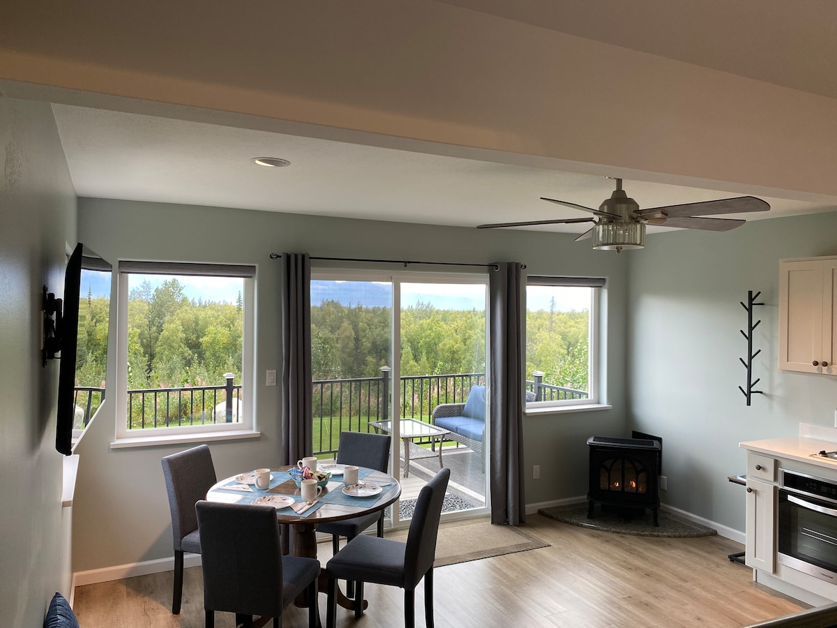 Ubicada en el valle del río Knik, la cabaña Glacier Breeze está rodeada de impresionantes vistas de 360° de la impresionante cordillera Chugach. Relájate mientras estás cerca de muchas grandes experiencias de Alaska, todo mientras sientes que realmente estás en la última frontera, no solo en otra ciudad. ¡Alces justo fuera de tu ventana, luces del norte bailando arriba, un fuego crepitando en la estufa y vistas panorámicas a la montaña, el Glacier Breeze puede permitirte experimentar lo que hace que Alaska sea una experiencia inolvidable!