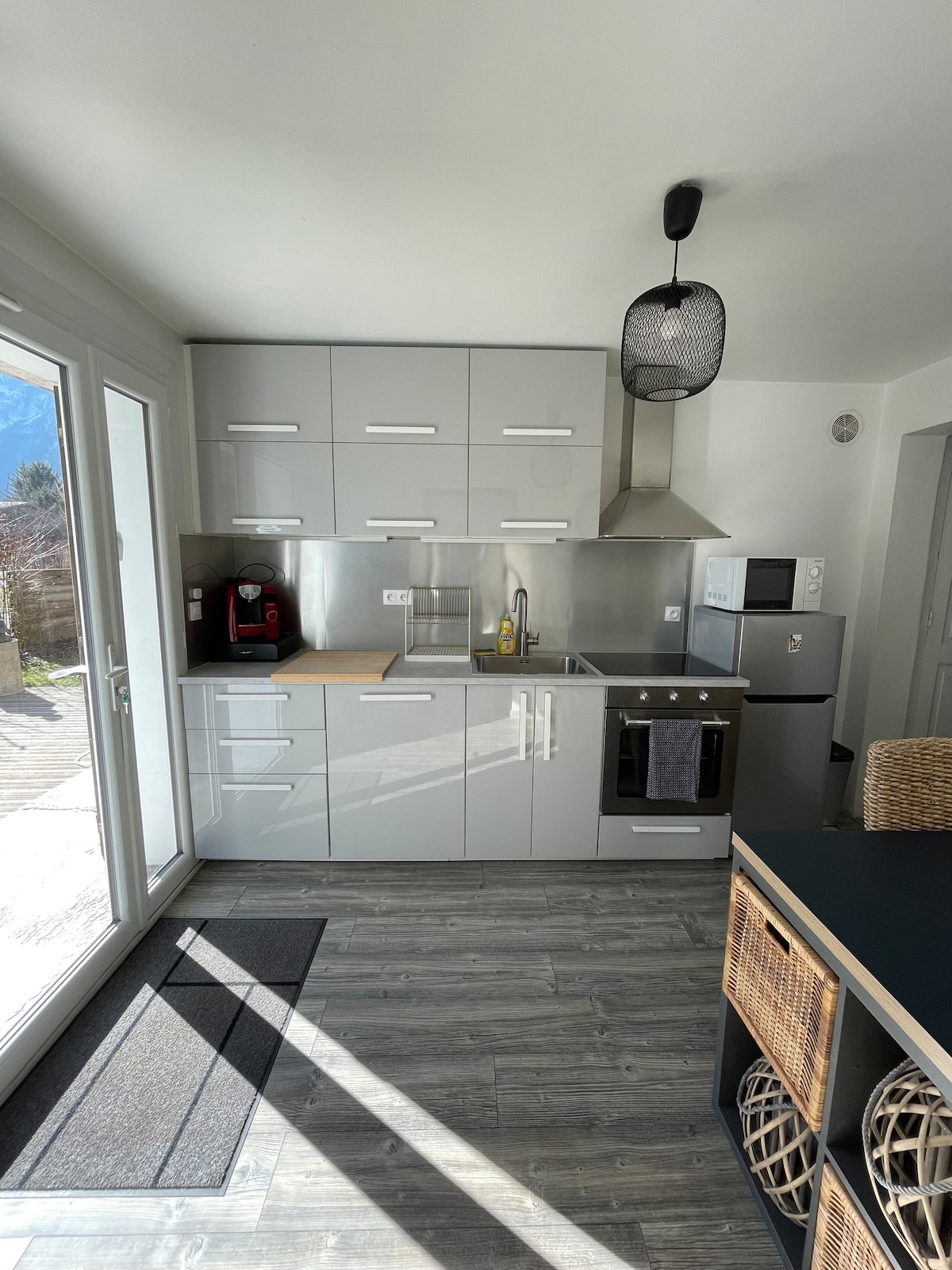 Planta baja tranquila para 2-4 personas , 20 M2 , ideal para una pareja o con niños (sin habitación cerrada) estudio totalmente equipado con terraza amueblada, refugio para bicicletas o esquís con candado, plaza de aparcamiento privada, cerca del centro con tienda de comestibles restaurantes, bar, salida de excursiones a pie, ciclista, frente a la parada del servicio de transporte gratuito con destino a la televisión de ALLEMOND a dos minutos en coche: horario en la web de la oficina de turismo .