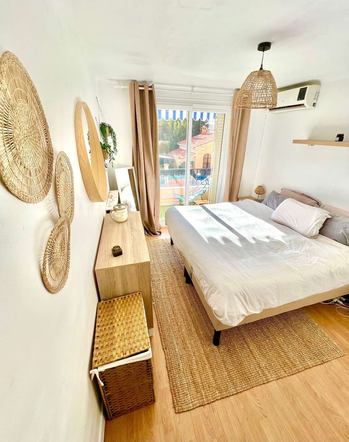 Tómese un descanso y relájese en este bonito estudio situado en el barrio de la Palestre a 10 minutos del Palacio de Festivales y de las playas en una residencia segura + aparcamiento público Con todas las comodidades: cocina equipada, aire acondicionado, sofá cama con colchón real de 160 Podrá disfrutar de la piscina, una cancha de tenis, una cancha de petanca e incluso una zona de juegos para niños Cerca de todos los servicios, autobús, panadería, restaurantes, farmacia, centro comercial Leclerc a 5 minutos