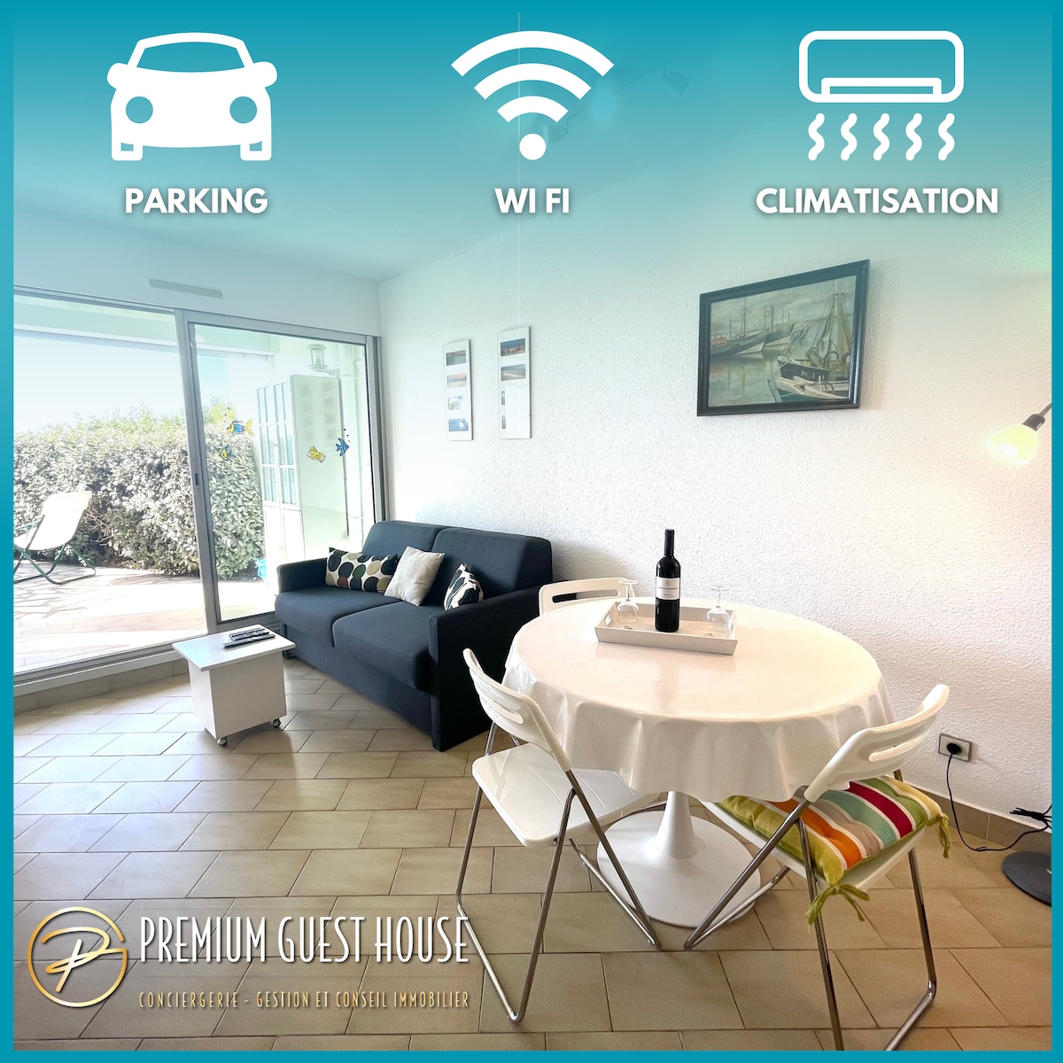Disfrute de un alojamiento elegante en el centro de la ciudad, cerca del puerto y del mar. Completamente restaurado, este estudio cuenta con una cocina totalmente equipada (horno, lavavajillas, nevera/congelador...), una sala de estar con pantalla plana y aire acondicionado, una terraza con vistas al mar y un baño moderno. También tiene una plaza de aparcamiento seguro en el sótano.