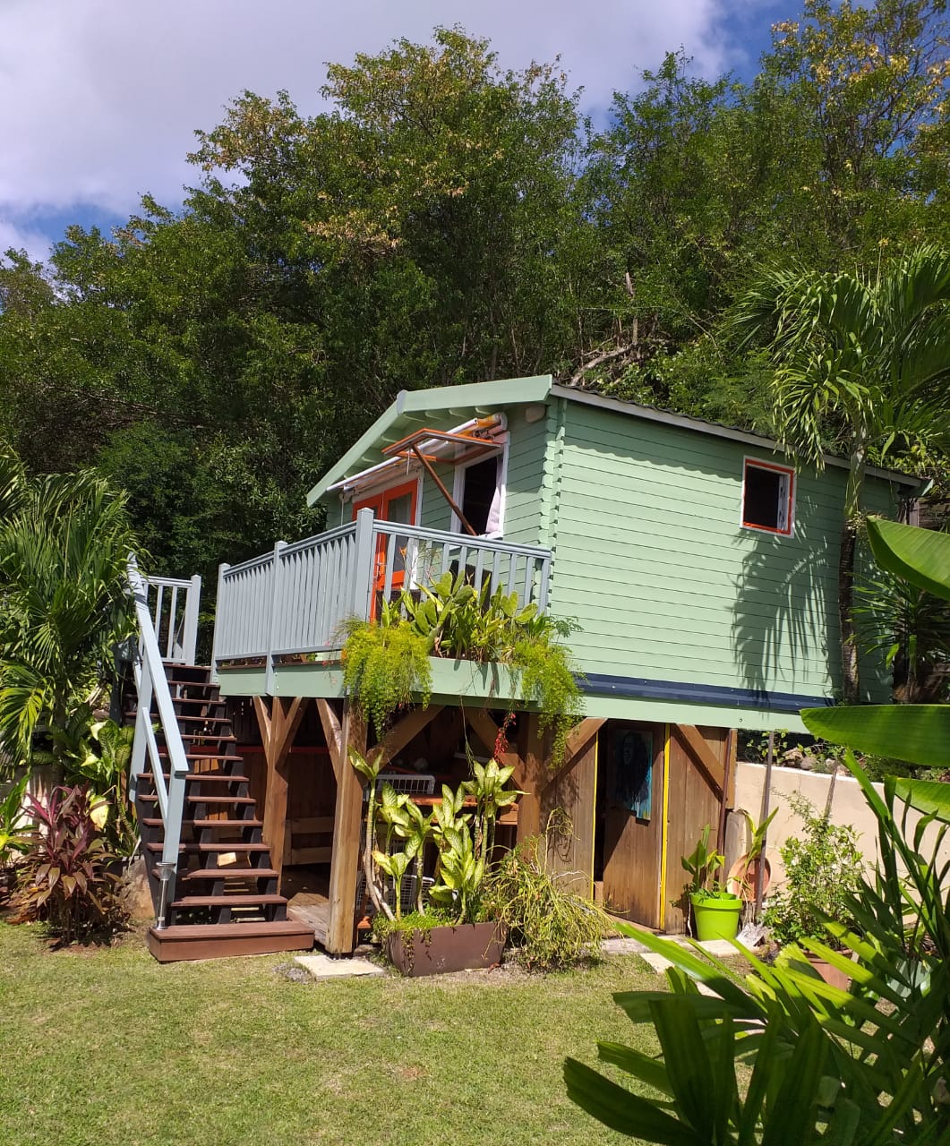 Encantador apartamento moderno independiente con aire acondicionado (322 pies cuadrados), planta baja de la villa del propietario, terraza de madera junto al agua (160 pies cuadrados). Este lugar único ofrece una magnífica vista sobre el fondeadero de Grande anse d'Arlet y un acceso directo y gratuito a nuestro muelle privado y al mar. A 3 minutos a pie de la tranquila playa de Grande anse a lo largo de nuestro carril privado.