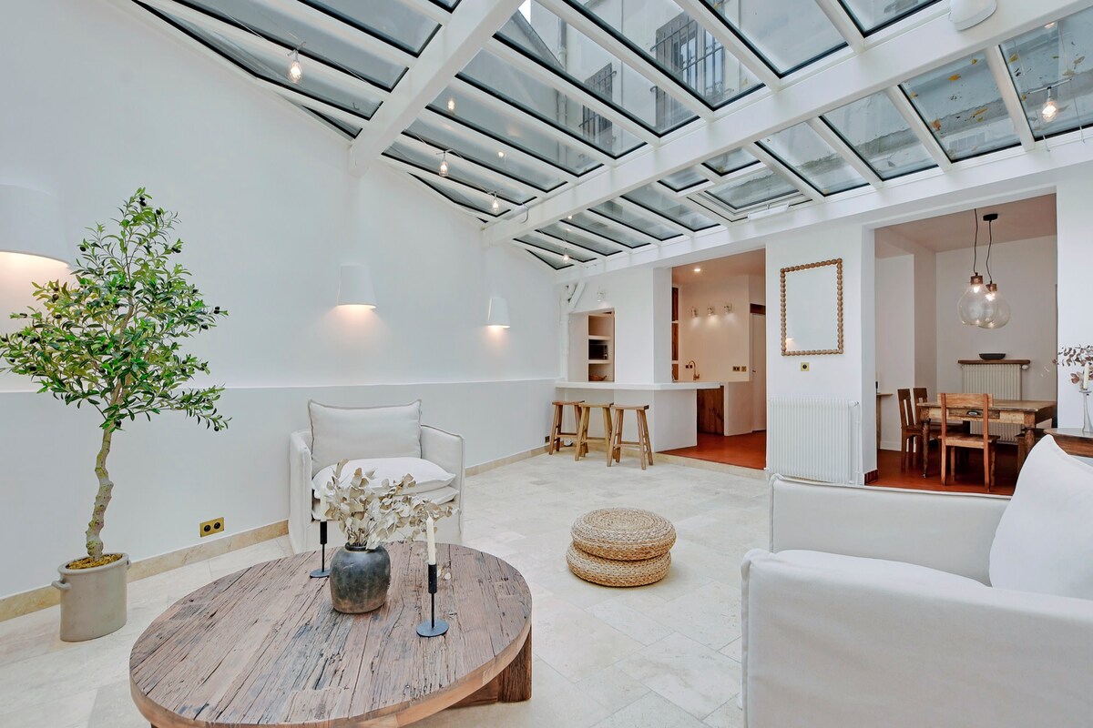 Lujoso e íntimo, este oasis urbano aislado se encuentra escondido en una calle residencial en la bulliciosa Bastilla, una de las zonas más auténticas y hípicas de París. Rodeado de muy buenos restaurantes, mercados de agricultores, tiendas de diseñadores y galerías de arte, ofrece todas las comodidades que encontrarías en un hotel de 5 estrellas, incluido un patio privado al aire libre aislado con su exuberante vegetación. La famosa Place des Vosges y Le Marais están a un paso de distancia.
