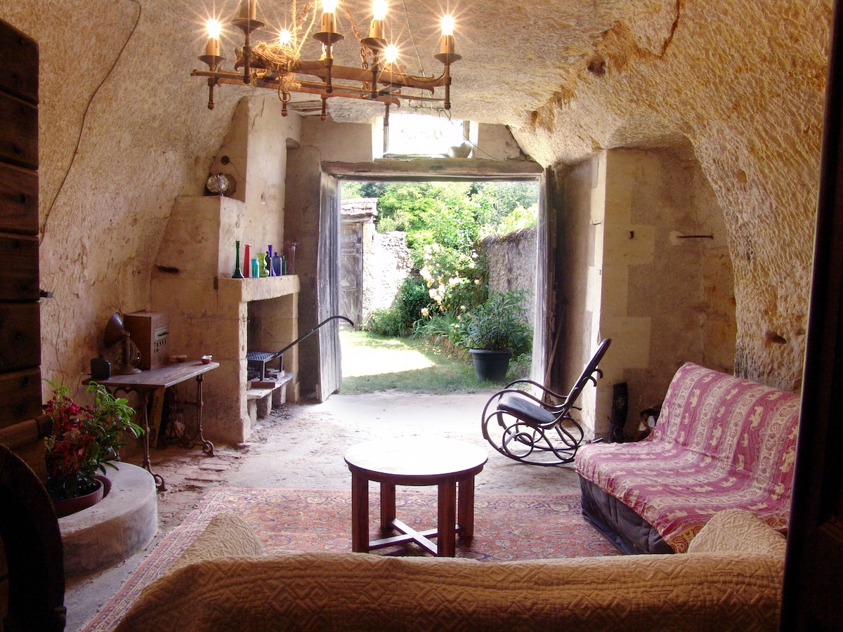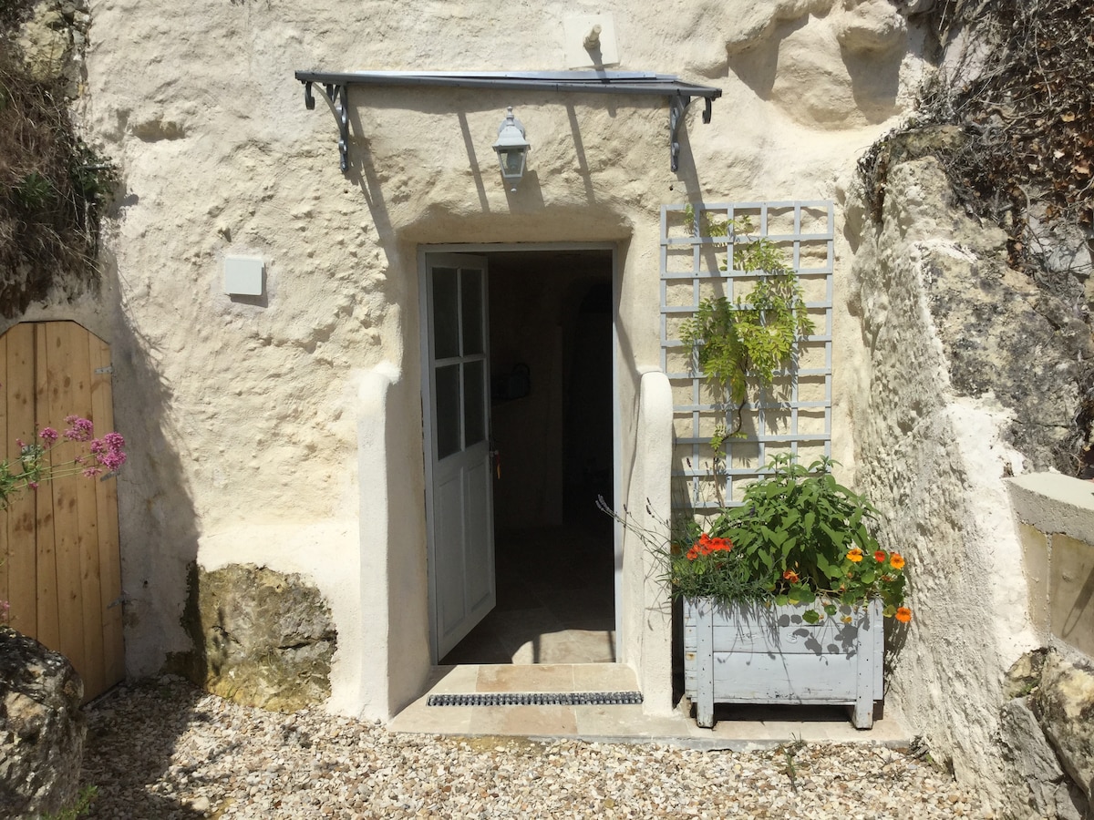 🌿 Experiencia troglodita auténtica y no estandarizada ☀️ Confort esencial, espíritu natural, jardines en terraza y vistas al Loira (a 4 km de Amboise) 🏡 Estudio excavado en la roca con patio privado 🚻 Baño separado con calefacción + nevera y lavadora en el sótano contiguo (3 escalones) 🌞 Anexos trogloditas ~200 m² (toba, sin calefacción, sin cama) — salón de verano e inserto (1ʳᵉ flambée ofrecida, participación madera a continuación) 📅 Estancia mínima: 2 noches