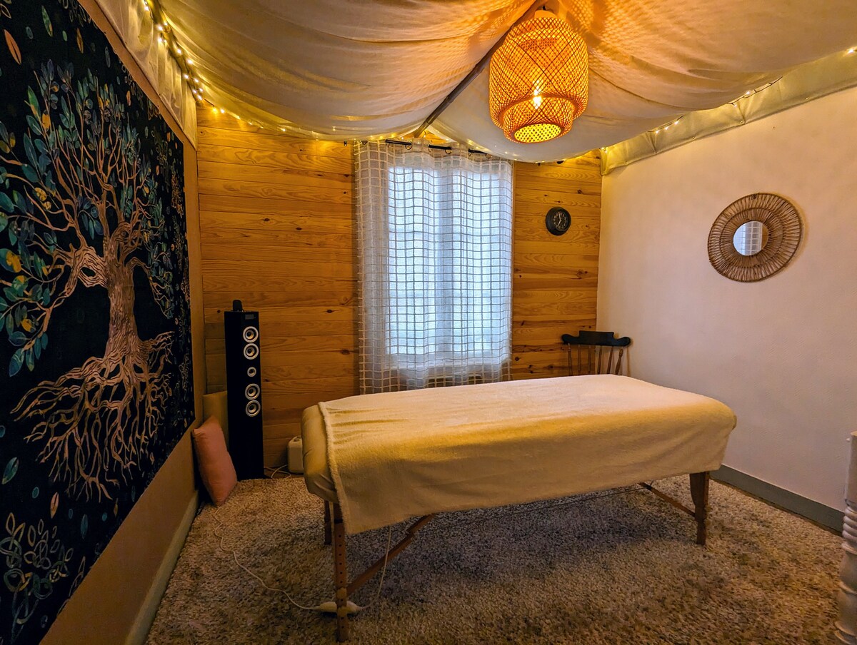 ** para cualquier RESERVA, por favor, rediríjase a nuestro nuevo anuncio: airbnb.fr/h/babethandserge este anuncio se mantiene en línea para el historial de reseñas Encantadora casa completamente renovada, que ofrece comodidad e intimidad. Garaje seguro para bicicletas. En 1 ha de naturaleza con arroyo, bambú, roble centenario y terraza soleada, lugar ideal para familias, amigos o teletrabajo (fibra). Cerca: golf, escalada, ciclismo de montaña, kayak, escalada de árboles, tirolina.